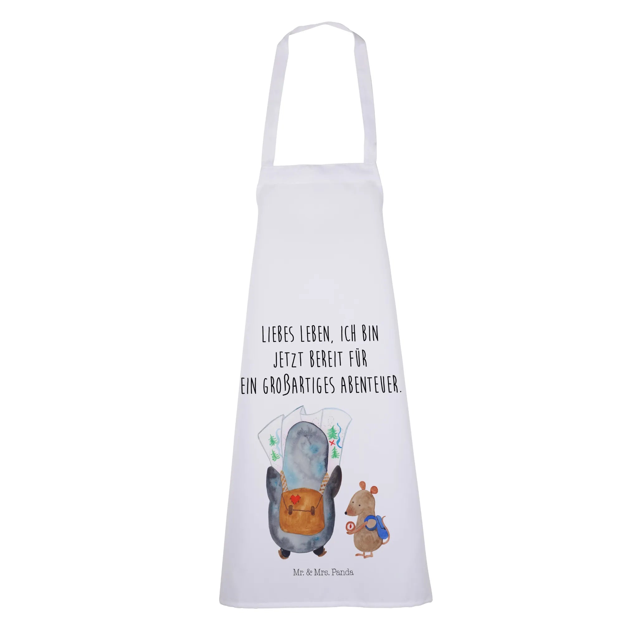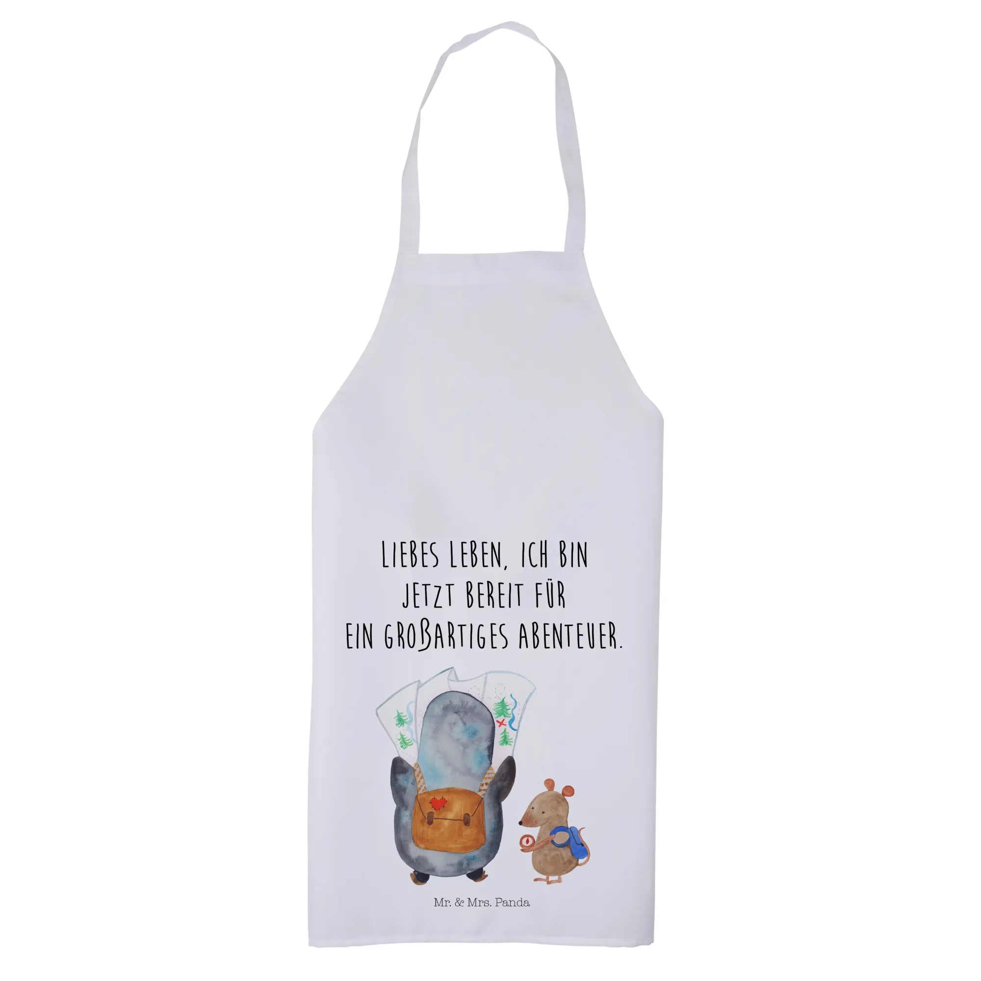Die Kochschürze "Pinguin & Maus Wanderer" von Mr. & Mrs. Panda ist das perfekte Geschenk für alle, die gerne kochen, grillen oder backen und dabei ein bisschen Abenteuerlust in ihren Alltag bringen möchten.