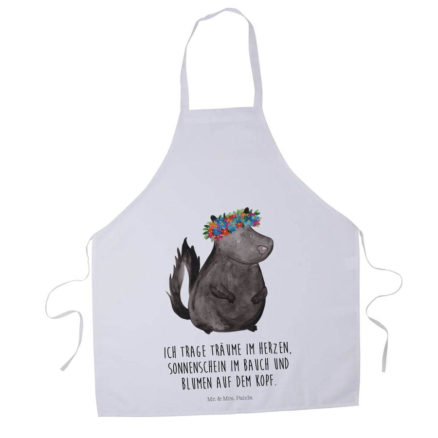 Die perfekte Kochschürze Stinktier Blumenmädchen von Mr. & Mrs. Panda ist nicht nur ein praktisches Küchenaccessoire, sondern ein echter Hingucker! Diese hochwertige Kochschürze aus Premium Kunstfaser ist samtweich und atmungsaktiv, ideal für alle, die gerne kochen und backen.