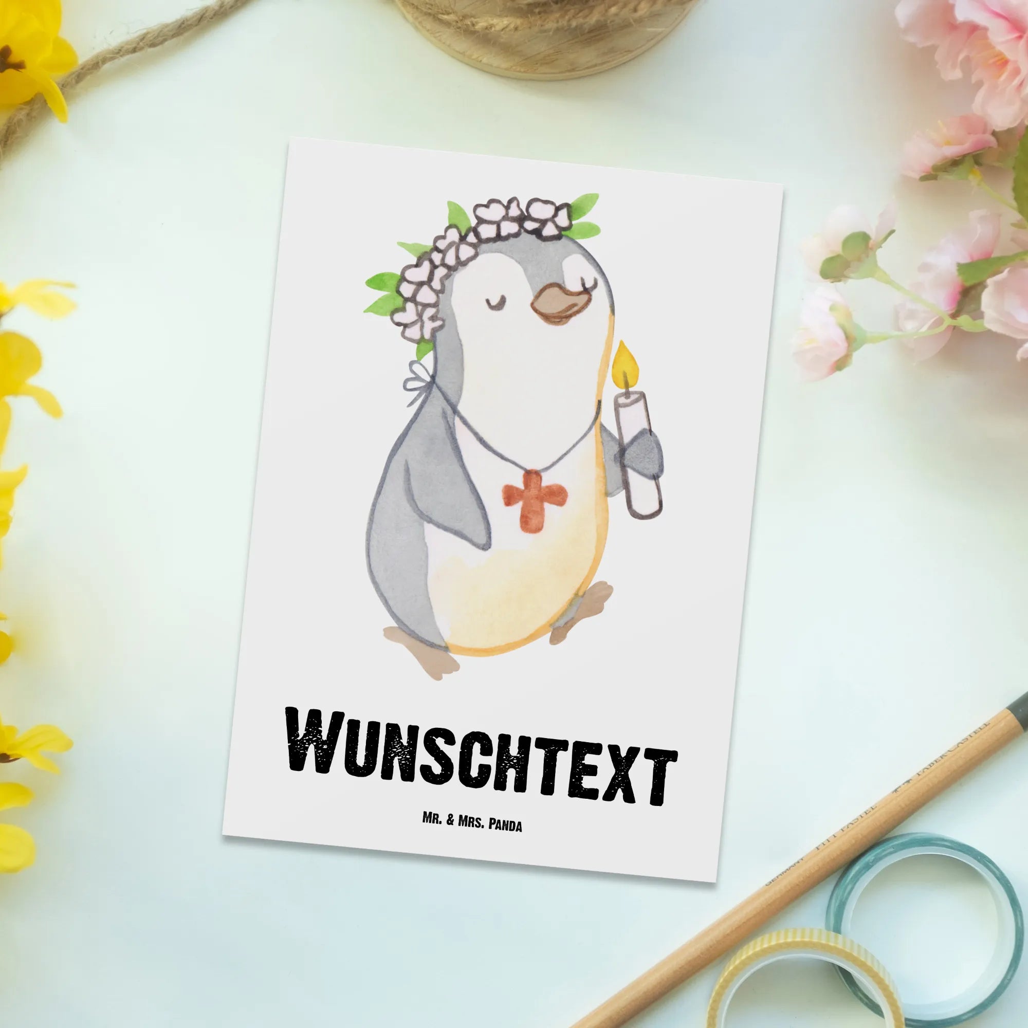 Personalisierte Postkarte Pinguin Kommunion Mädchen