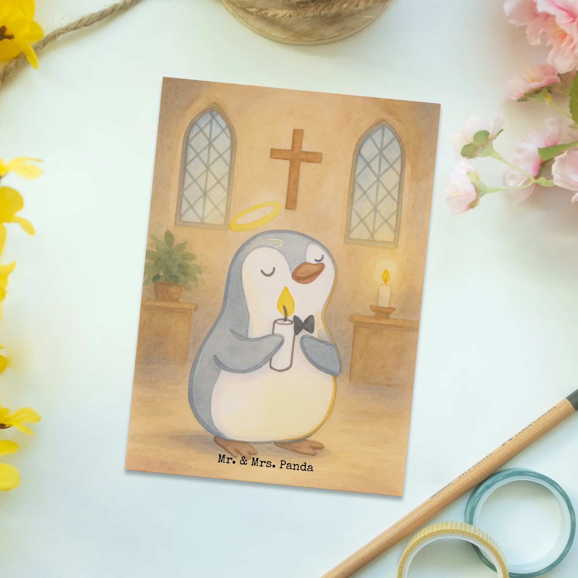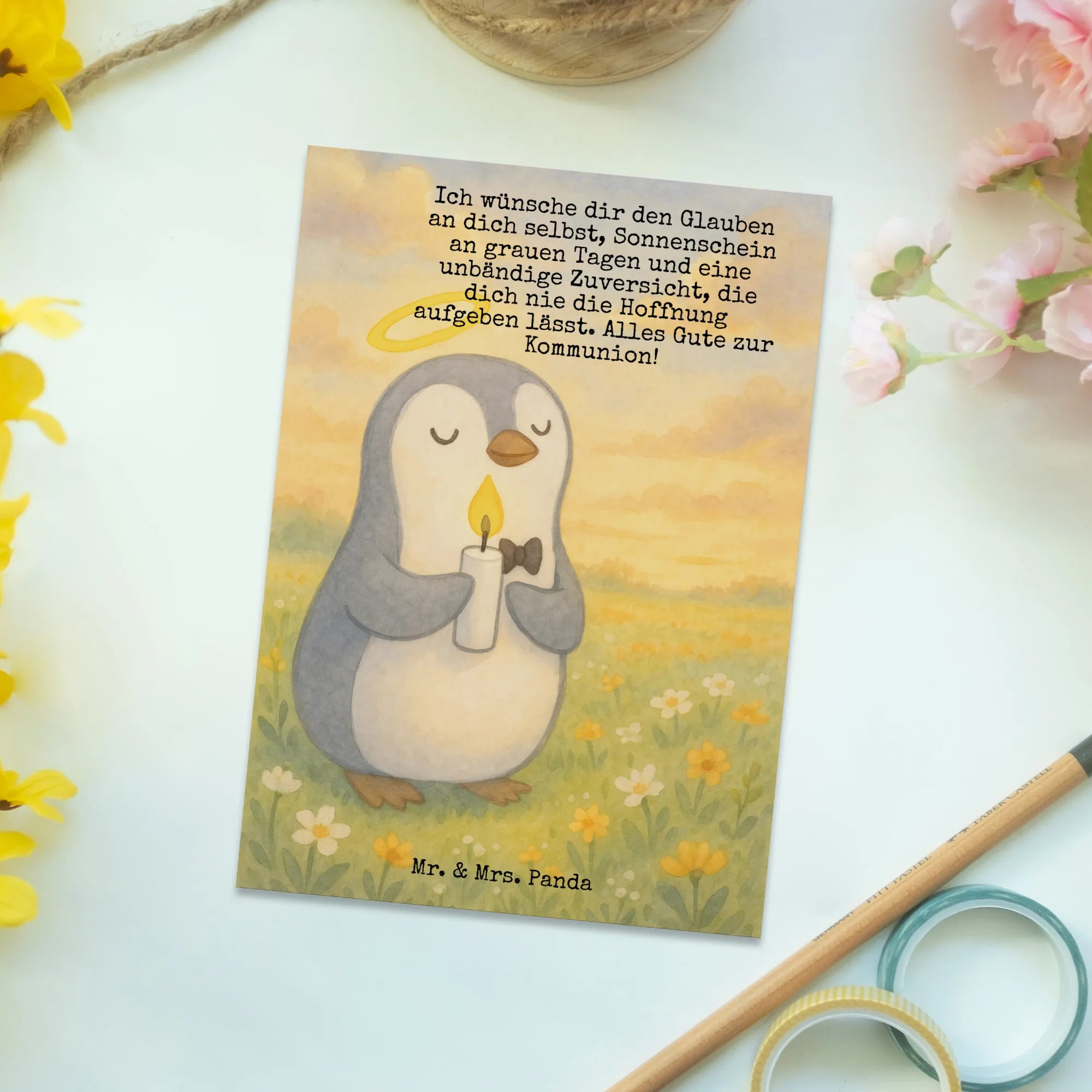 Postkarte Pinguin Kommunion Design