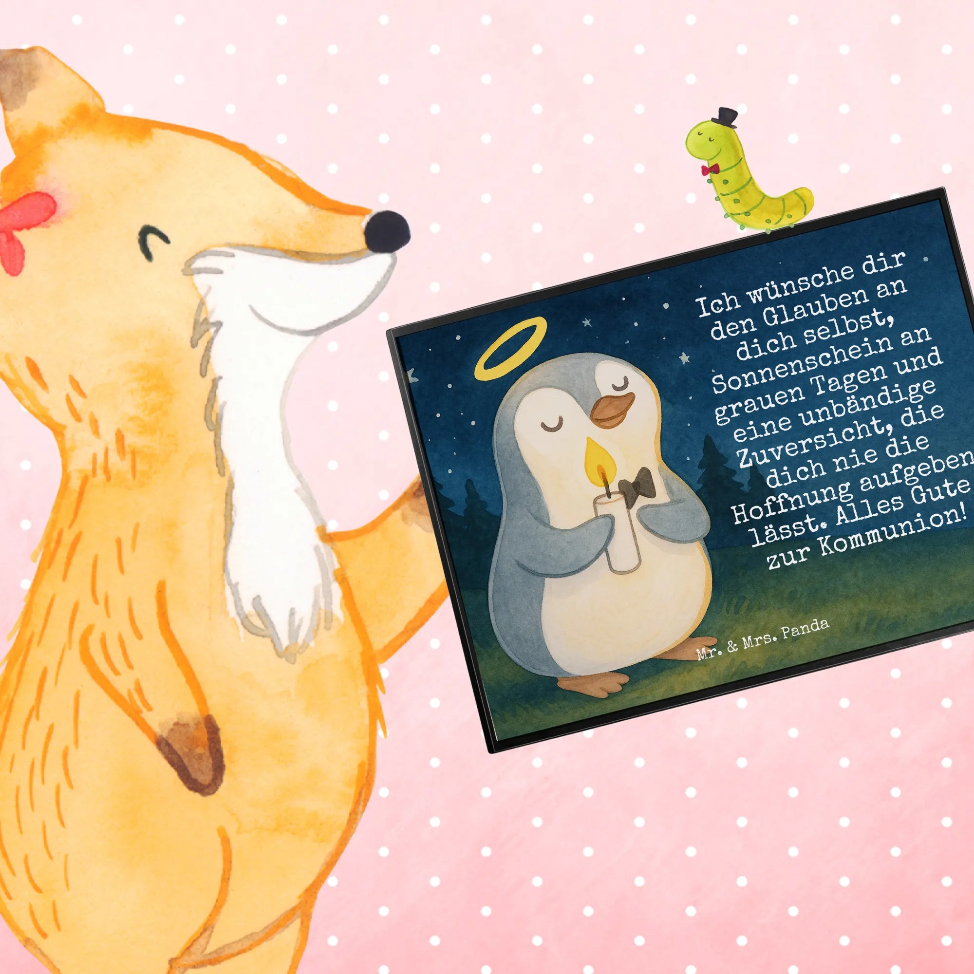 Schreibtischunterlage Pinguin Kommunion Design - mit Spruch