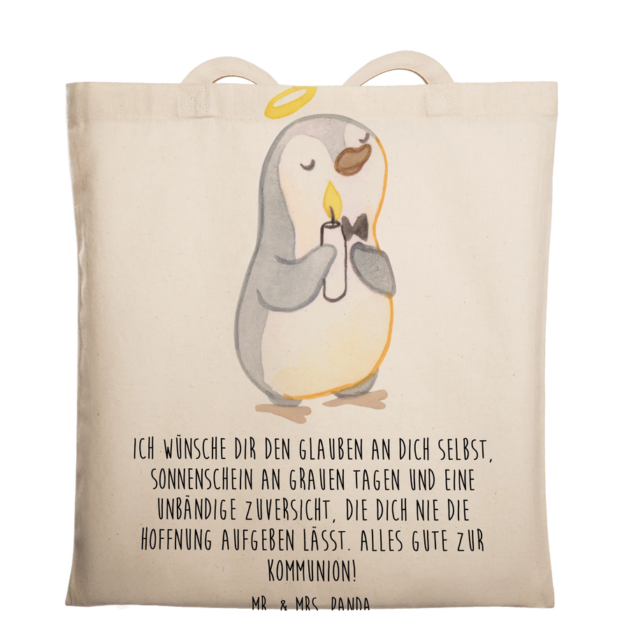 Die wunderschöne Tragetasche mit dem süßen Pinguin-Motiv zur Kommunion von Mr. & Mrs. Panda ist das perfekte Geschenk für einen ganz besonderen Anlass! Wenn dein kleines Engelchen bald die Kommunion feiert, dann ist diese Tragetasche genau das Richtige, um die Erinnerungen an diesen Tag in einem tollen, praktischen Begleiter festzuhalten. Der liebevoll gestaltete Pinguin mit der brennenden Kerze und dem Heiligenschein strahlt Freude und Stolz aus – ideal für den feierlichen Anlass!