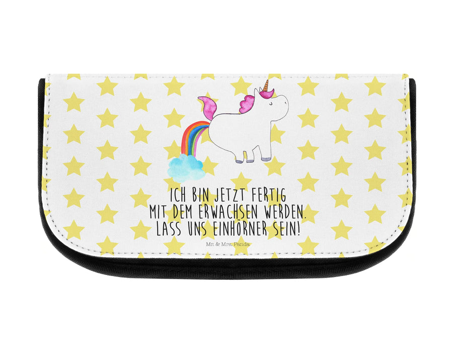 Entdecke die zauberhafte Kosmetiktasche Einhorn Pupsend von Mr. & Mrs. Panda, die der perfekte Begleiter für alle Einhornliebhaberinnen ist! Diese schicke und praktische Kosmetikbeutel präsentiert ein süßes Motiv mit einem pupsenden Einhorn, das mit Glitzer über einen bunten Regenbogen gleitet. Es ist nicht nur ein Blickfang, sondern bringt auch ein Lächeln auf dein Gesicht, besonders wenn du manchmal das Gefühl hast, dass das Erwachsensein ganz schön herausfordernd sein kann. Mit dem frechen Slogan 'Ich bin jetzt fertig mit dem Erwachsenwerden. Lass uns Einhörner sein!' appelliert diese Kosmetiktasche an die verspielte Seite in dir und erinnert dich daran, dir auch im hektischen Alltag kleine Freuden zu gönnen.