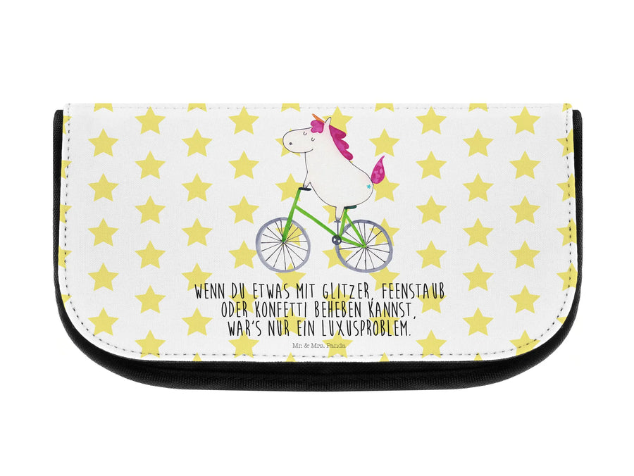 Du bist auf der Suche nach dem perfekten Geschenk für eine Freundin oder deine Schwester? Unsere Kosmetiktasche mit dem zauberhaften Motiv "Einhorn Radfahrer" aus der Einhorn-Kollektion von Mr. & Mrs. Panda ist die ideale Wahl! Sie bringt ein Lächeln auf die Lippen und zaubert Glitzer in den Alltag. Egal ob für das tägliche Make-up, als Beauty Bag für die Reise oder einfach als stylisches Accessoire – diese Kosmetiktasche passt immer!