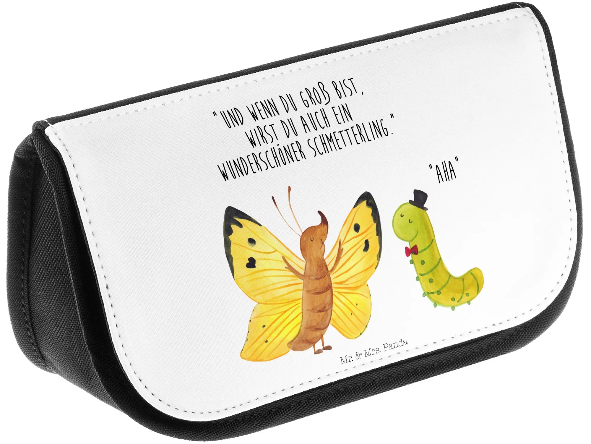 Entdecke die zauberhafte Kosmetiktasche "Raupe & Schmetterling" von Mr. & Mrs. Panda – der perfekte Begleiter für deinen Alltag! Diese süße Kulturtasche kombiniert Funktionalität mit einem einzigartigen, künstlerisch gestalteten Motiv, das von der inspirierenden Transformation einer Raupe in einen wunderschönen Schmetterling erzählt.