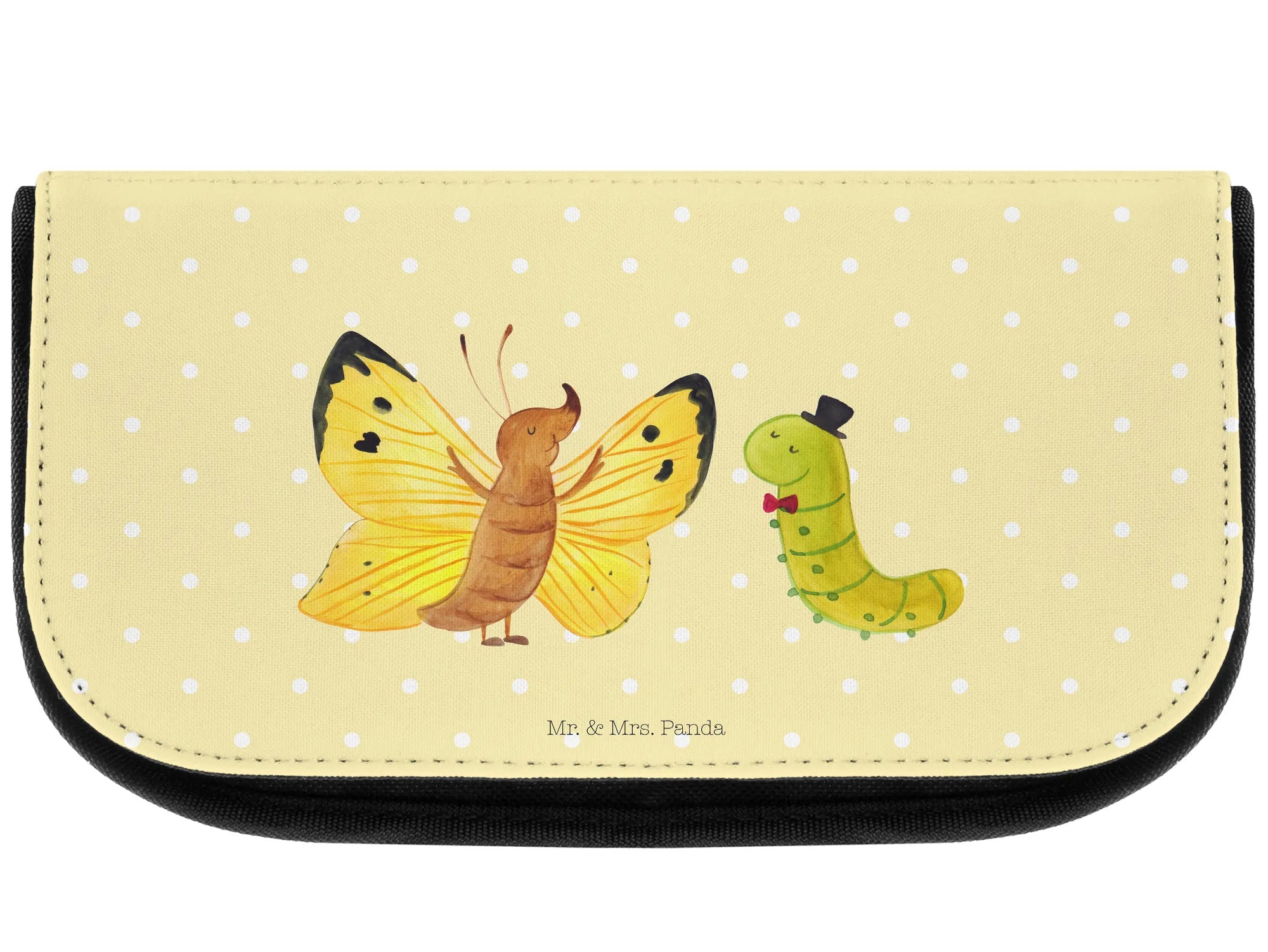 Kosmetiktasche Raupe Schmetterling - mit Spruch - Gelb Pastell