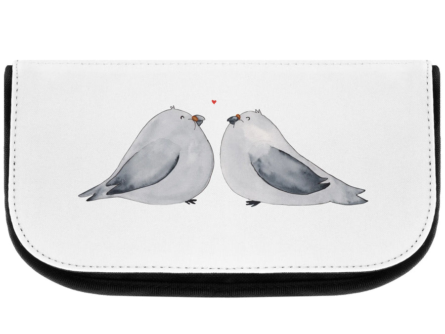 Entdecke die zauberhafte Kosmetiktasche mit dem süßen Motiv der Turteltauben Liebe von Mr. & Mrs. Panda!