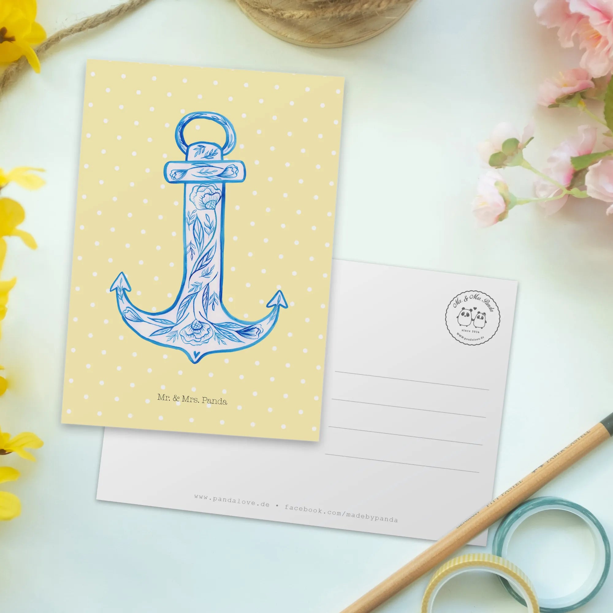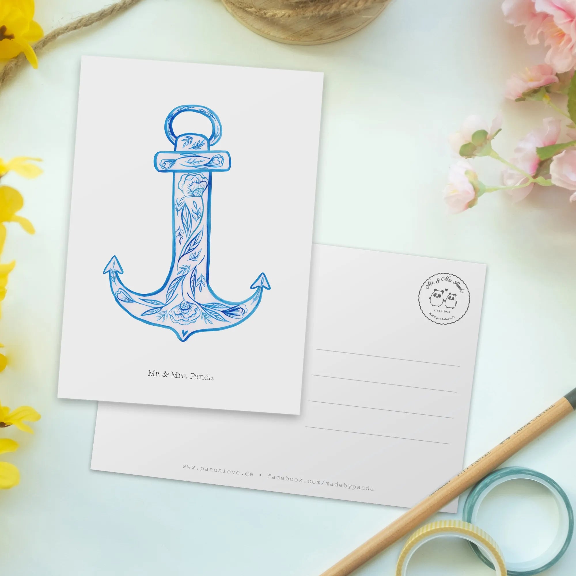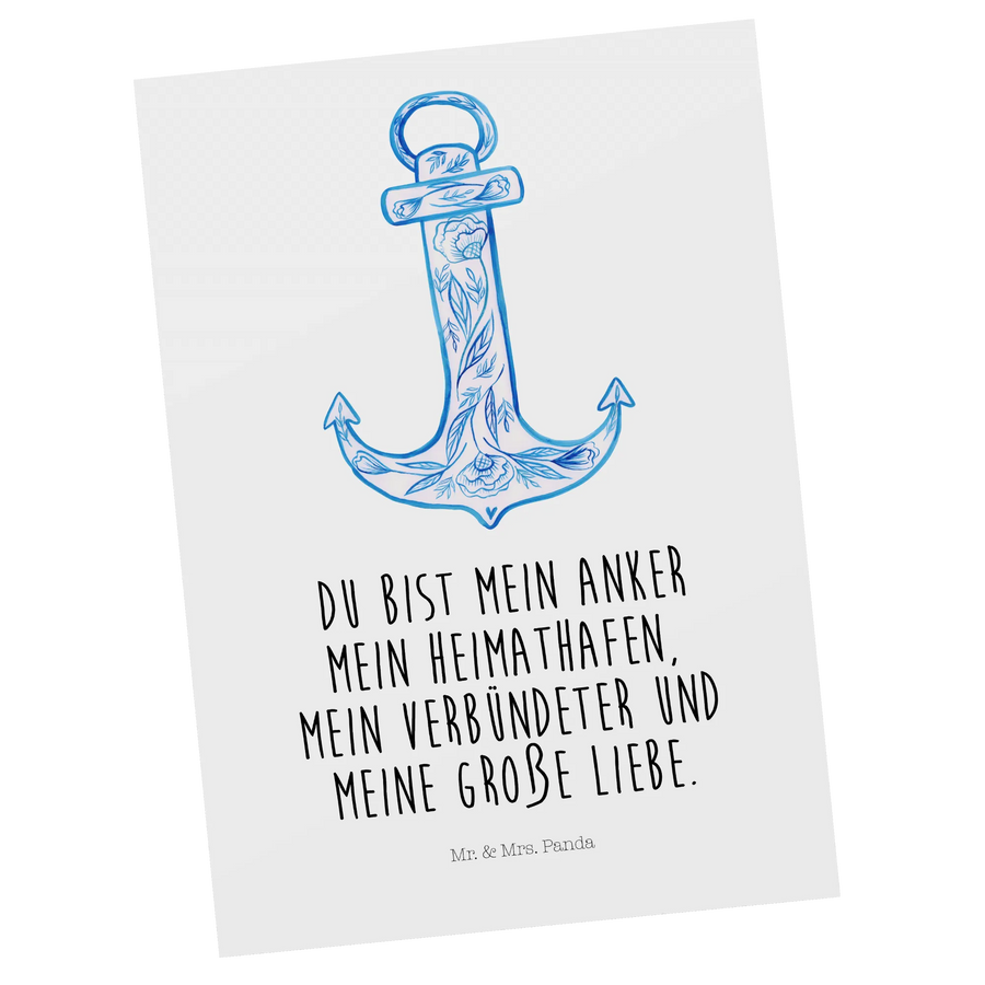 Mach einem lieben Menschen eine Freude oder behalte sie einfach für dich – diese Postkarte wird immer zum Schmunzeln einladen und Herzen berühren. Hol dir jetzt die "Anker Blau" Postkarte von Mr. & Mrs. Panda nach Hause und setze ein Zeichen für Freundschaft und Verbundenheit!