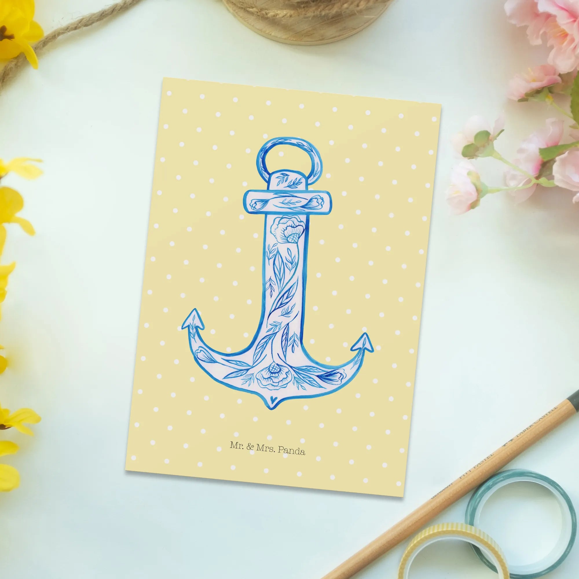 Die Postkarte "Anker Blau" aus der bezaubernden Small World Kollektion von Mr. & Mrs. Panda ist das perfekte Geschenk für jeden Anlass! Mit ihrem maritimen Flair und dem liebevoll gestalteten Anker-Motiv zieht sie alle Blicke auf sich. Die tiefblaue Farbe des Ankers strahlt nicht nur Ruhe und Gelassenheit aus, sondern ist auch eine tägliche Erinnerung daran, dass du deinen Zielen folgen solltest.