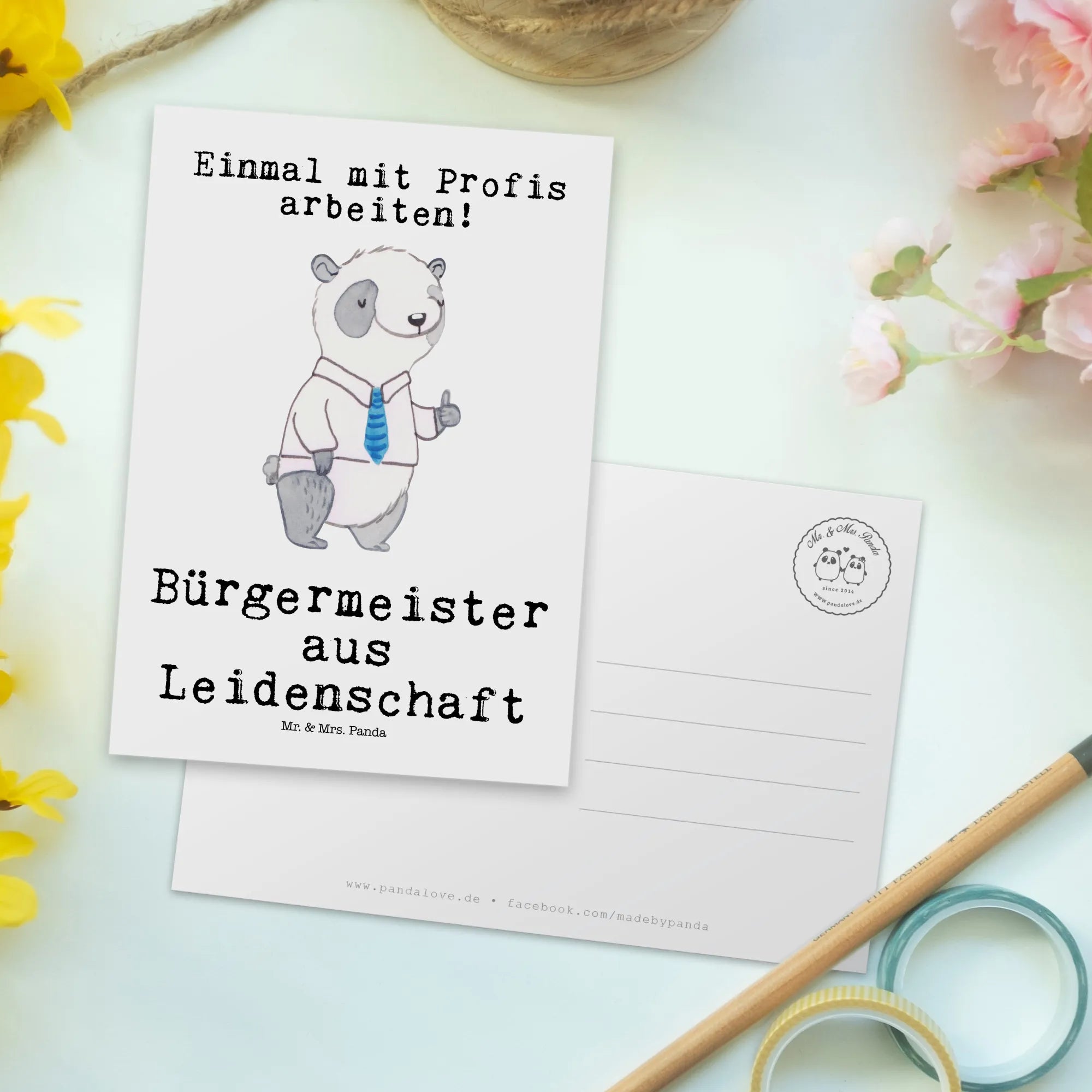 Entdecke die zauberhafte Postkarte "Bürgermeister aus Leidenschaft" von Mr. & Mrs. Panda – der perfekte Weg, um Deinen Bürgermeister oder das neue Oberhaupt Deiner Stadt zu feiern!