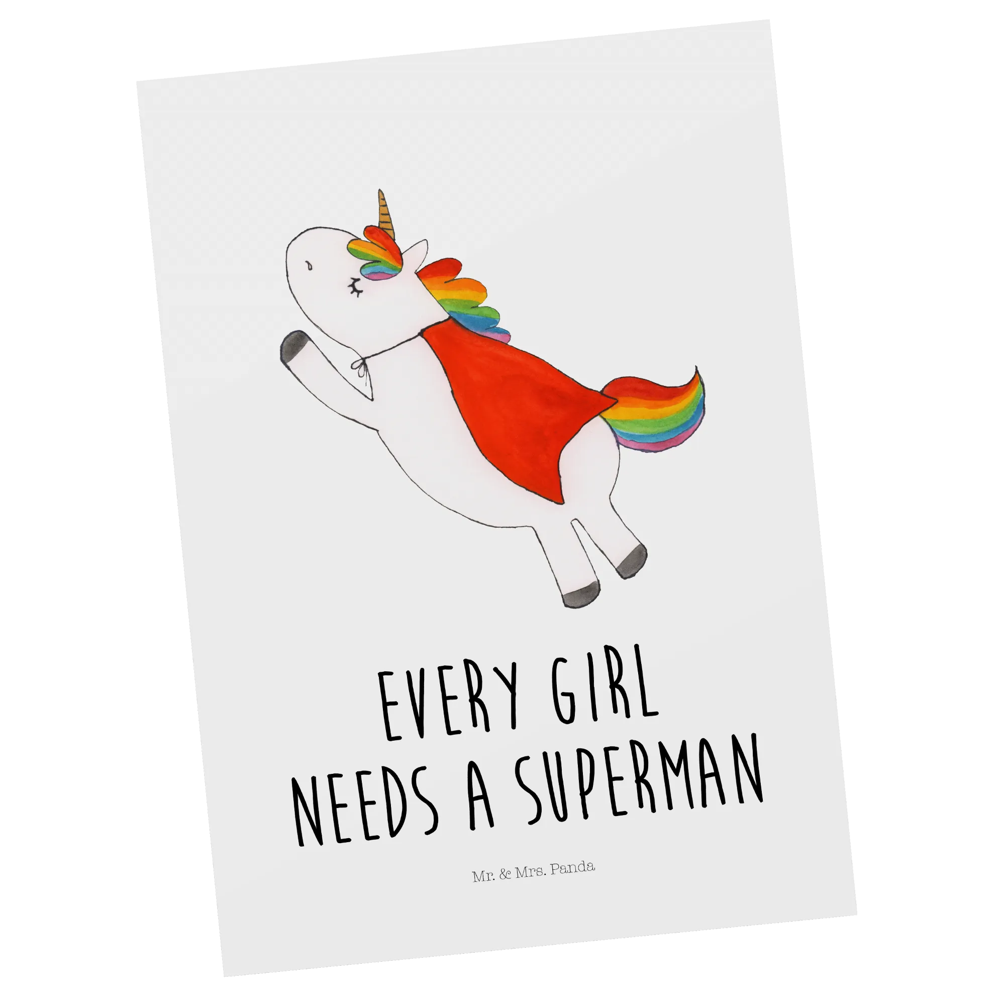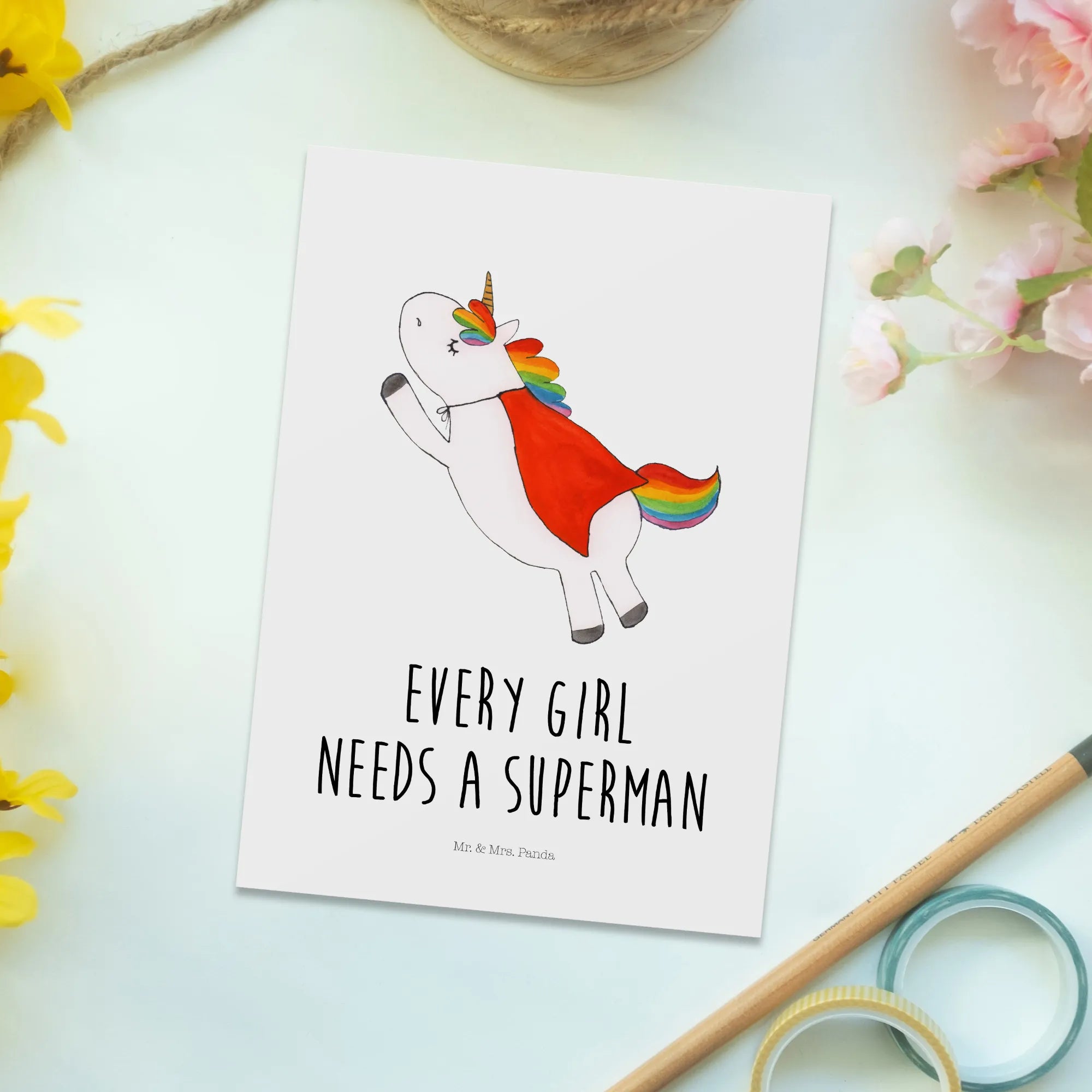 Du suchst nach einem besonderen Geschenk für ein Mädchen, das Einhörner liebt? Dann ist die Postkarte "Einhorn Super" aus der zauberhaften Einhorn-Kollektion von Mr. & Mrs. Panda genau das Richtige für dich! Diese einzigartige Postkarte bringt mit ihrem süßen Motiv und dem liebevollen Spruch "Every girl needs a superhero" garantiert ein Lächeln auf das Gesicht jeder kleinen Prinzessin.