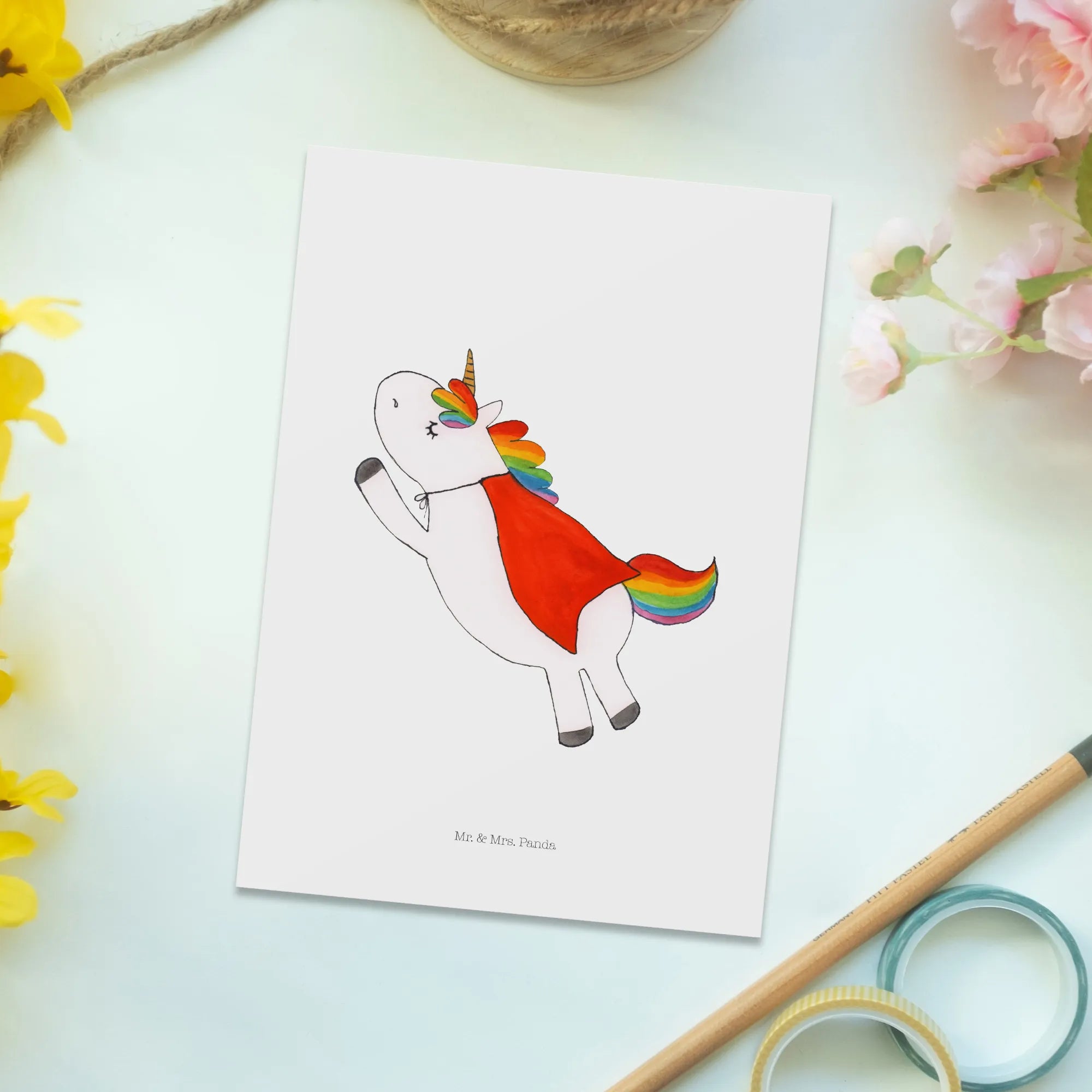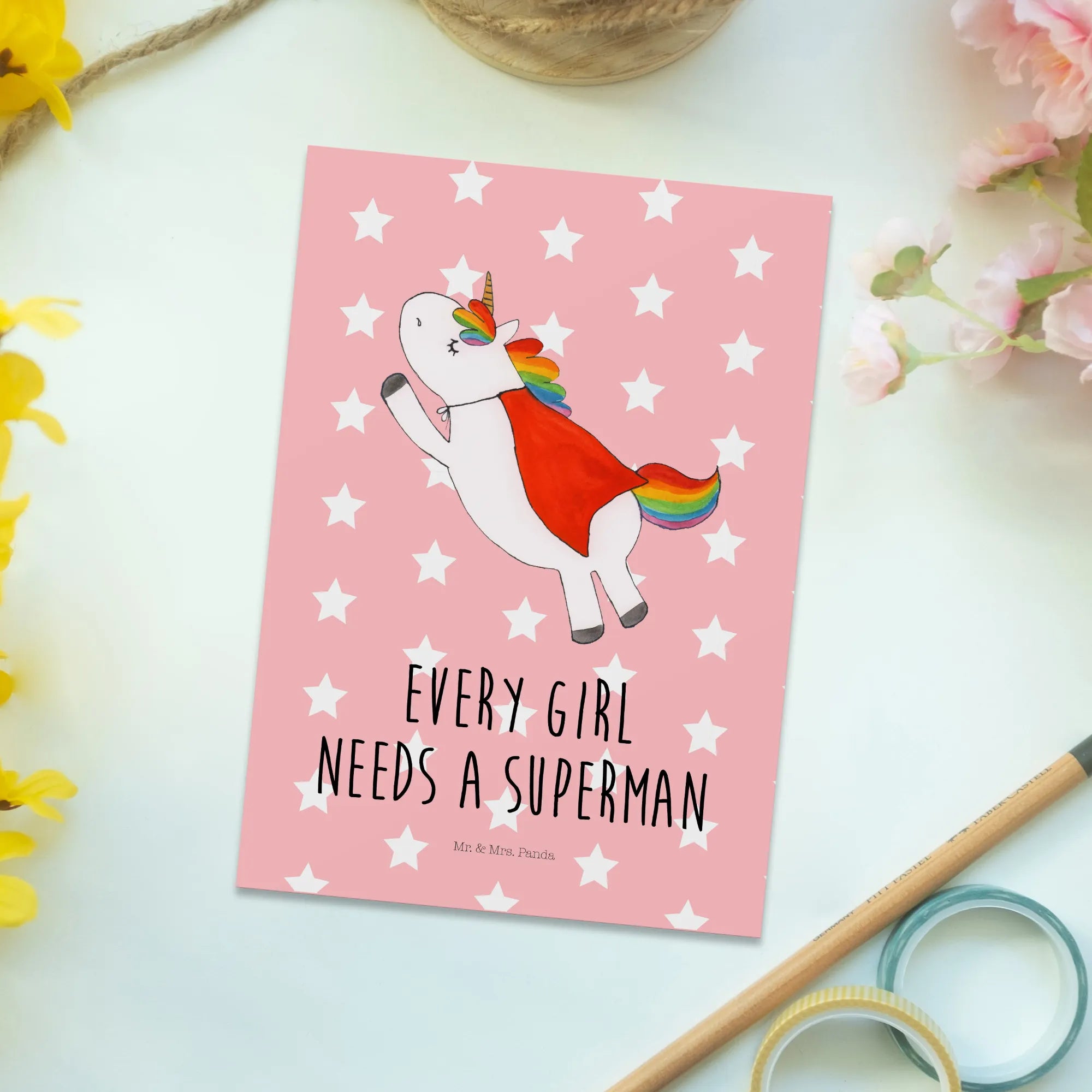 Die Postkarte Einhorn Super aus der Einhorn-Kollektion von Mr. & Mrs. Panda ist das perfekte Geschenk für alle Mädchen und Frauen, die an die Magie von Einhörnern glauben. Sie strahlt pure Lebensfreude aus und trägt den witzigen Spruch "Every girl needs a superhero". Ob zum Geburtstag, als Einladung oder einfach nur als liebevolle Geste – diese Karte wird mit Sicherheit ein Lächeln auf das Gesicht der Beschenkten zaubern.