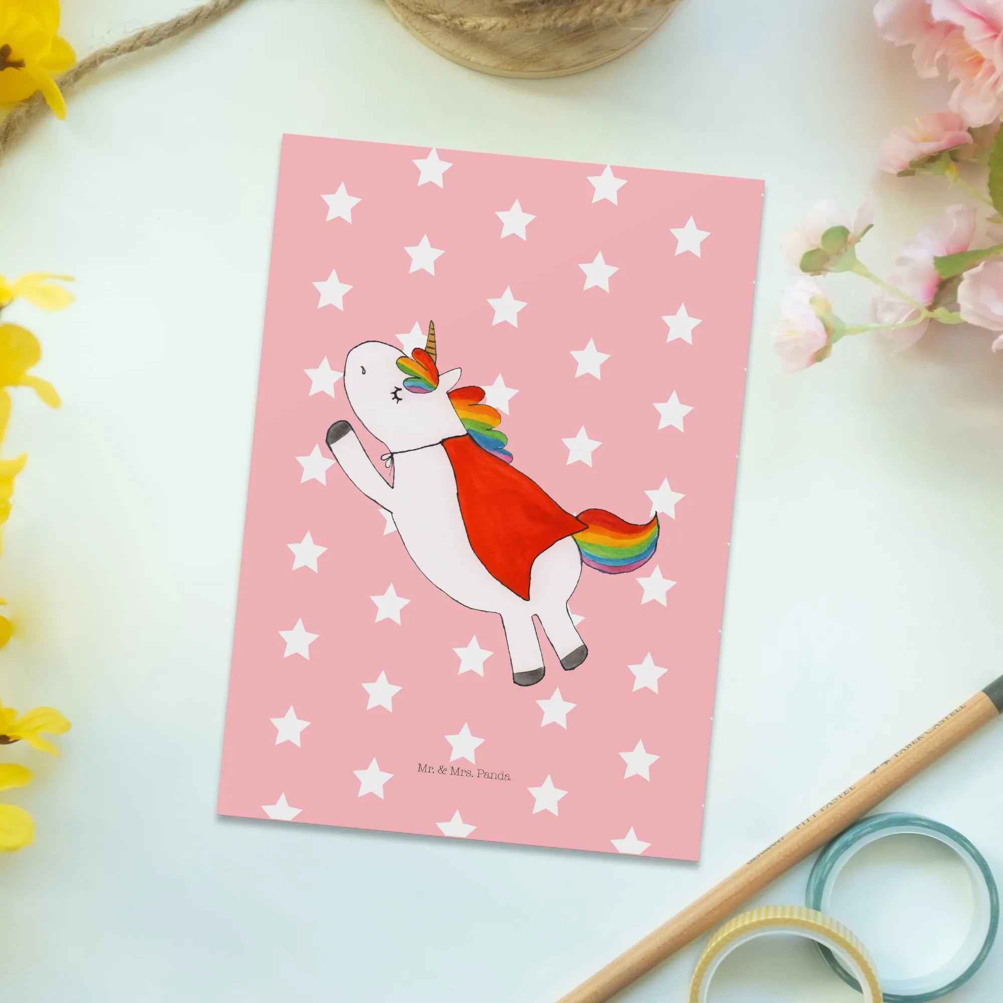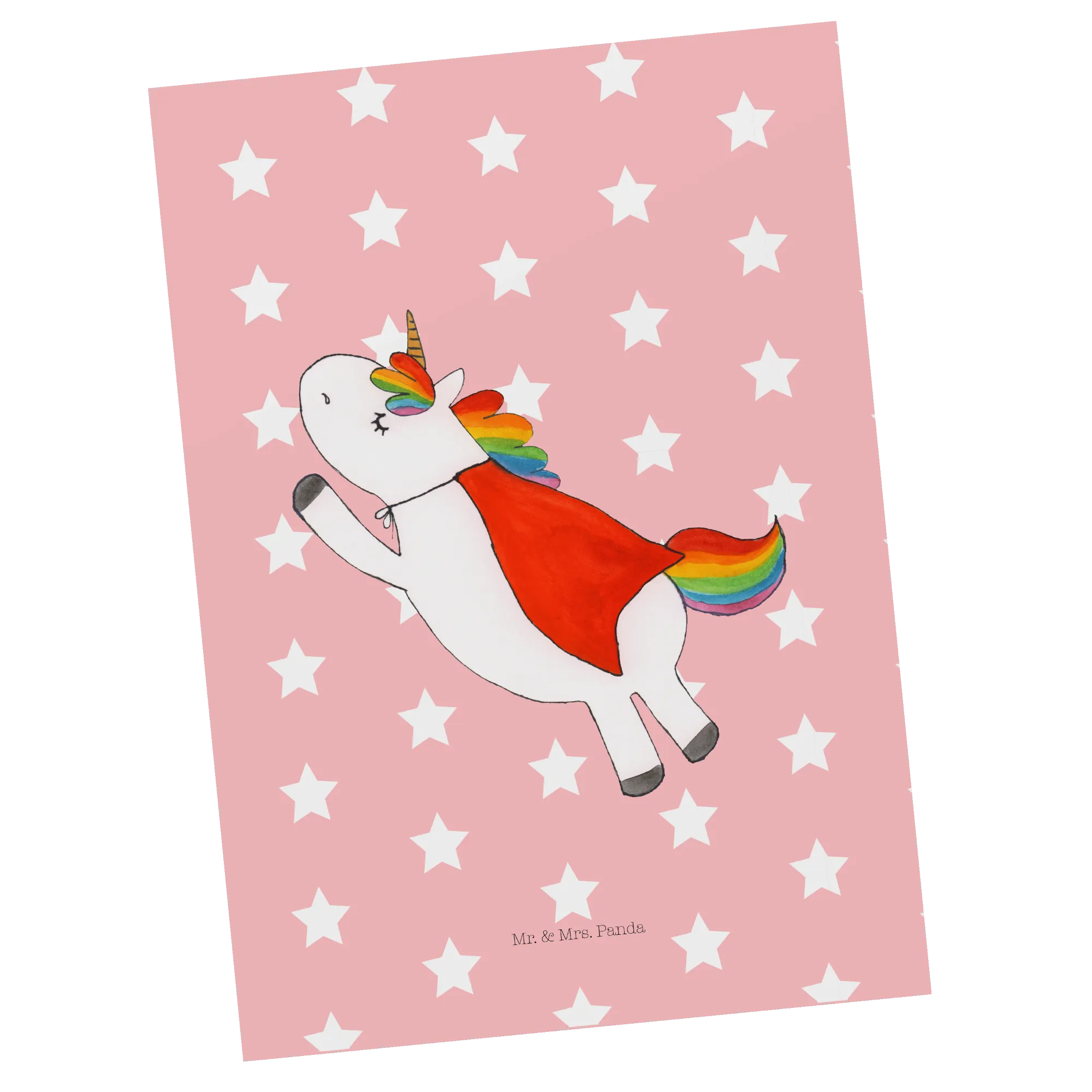 Postkarte Einhorn Super - mit Spruch - Rot Pastell