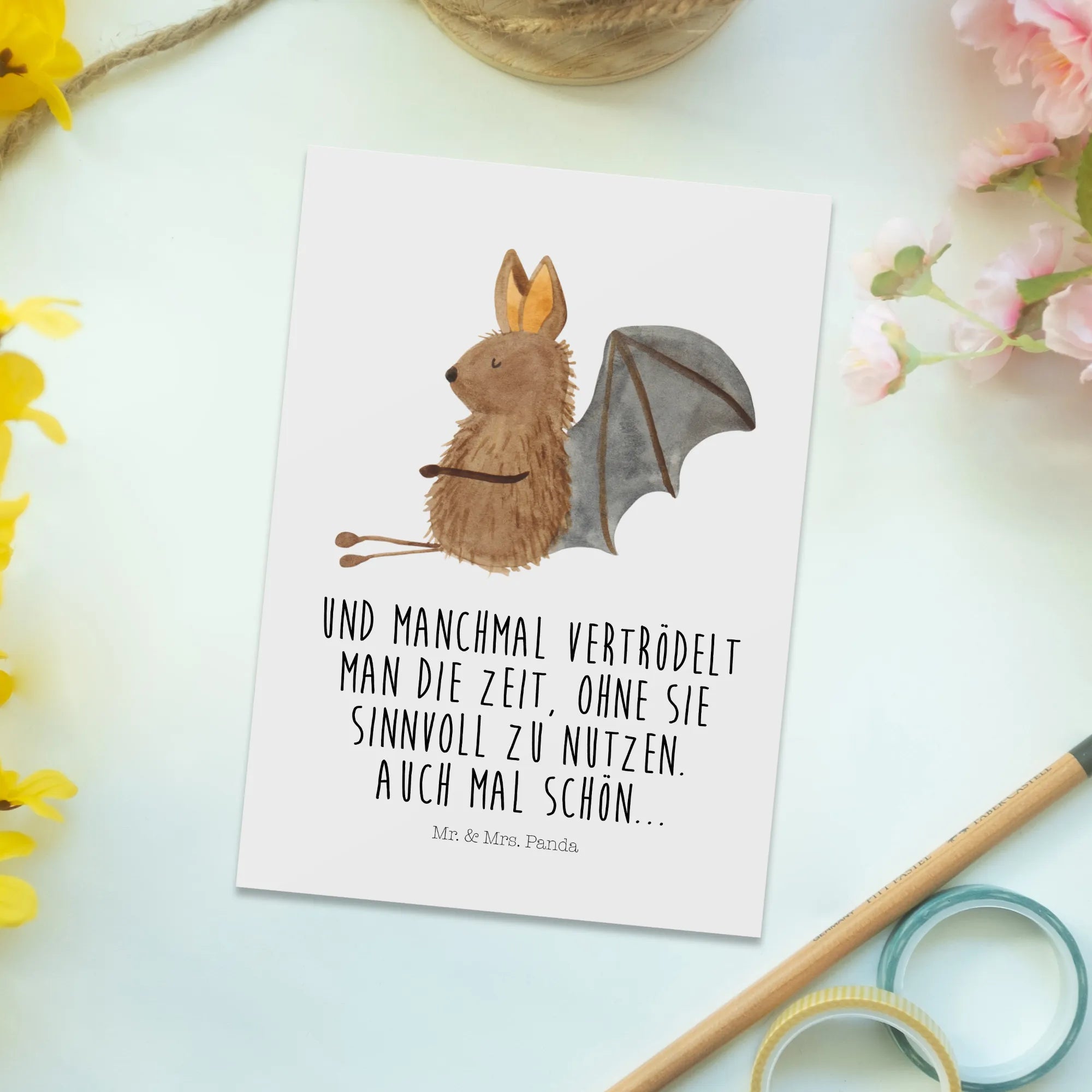 Postkarte Fledermaus Sitzen - mit Spruch - Weiß