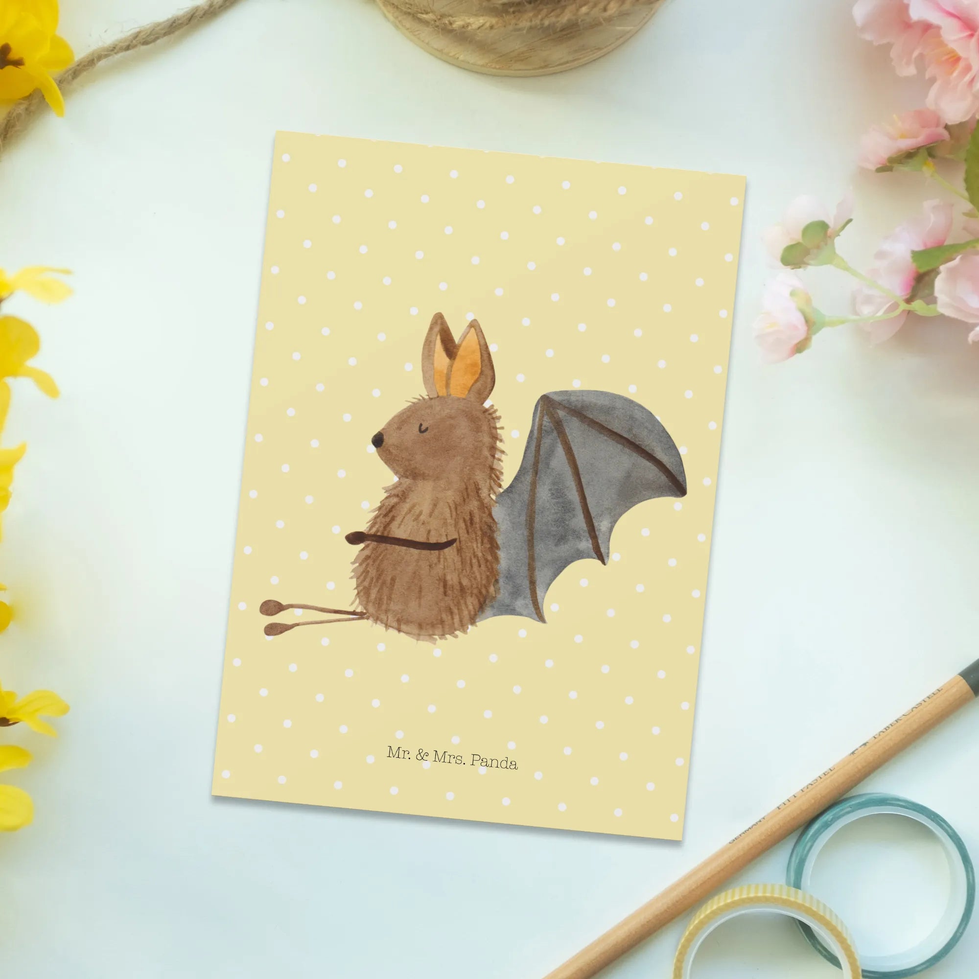 Bestelle jetzt die Fledermaus sitzend Postkarte von Mr. & Mrs. Panda und bringe ein Stück gute Laune in deinen Alltag!