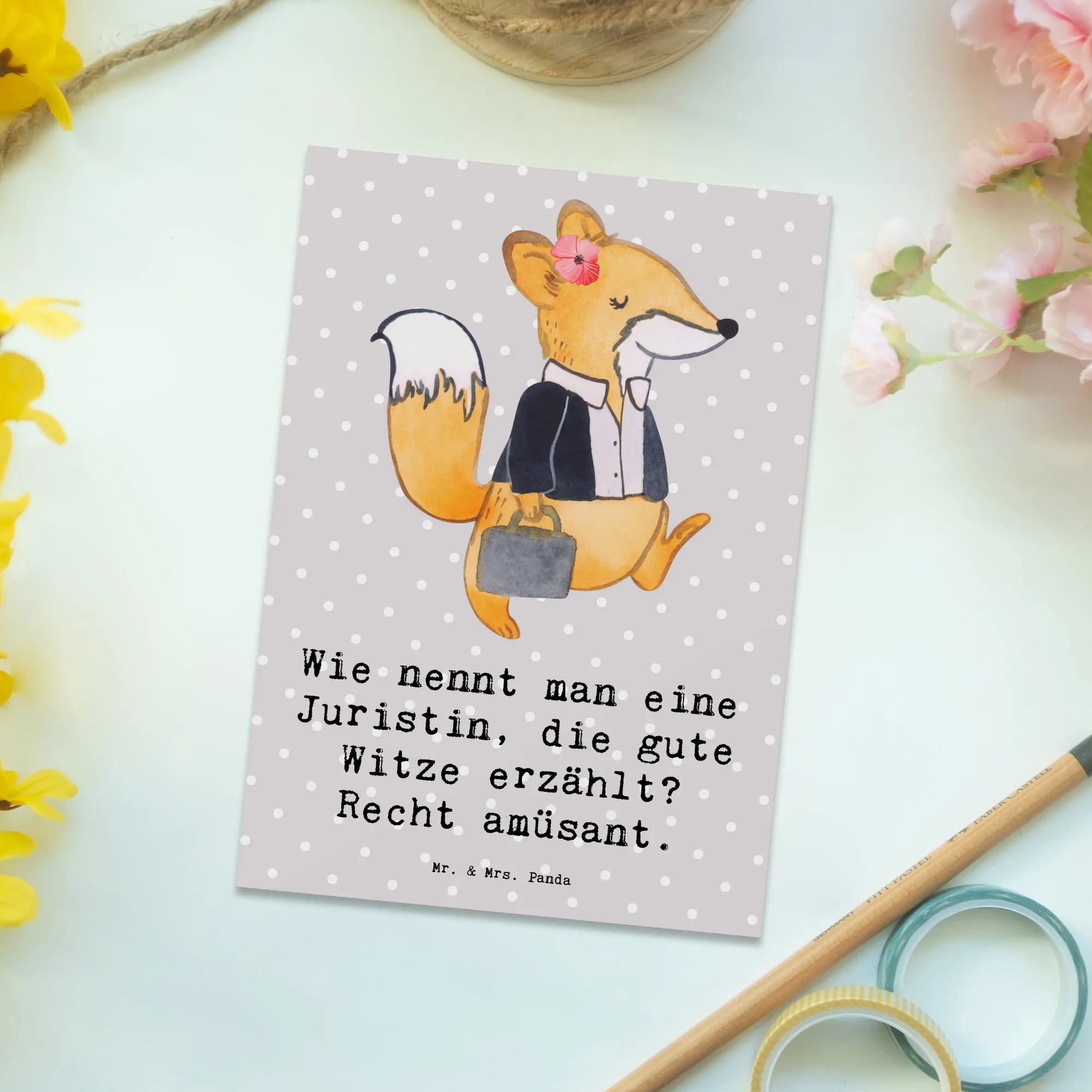 Entdecke die bezaubernde Postkarte "Juristin" aus der liebevollen Berufe-Kollektion von Mr. & Mrs. Panda! Diese einzigartige Postkarte ist perfekt, um deine Wertschätzung für Freunde, Kollegen oder Familienmitglieder auszudrücken, die in der Welt des Rechts tätig sind. Egal, ob du ein Geschenk für einen Geburtstag, ein Berufsjubiläum oder einfach nur so suchst, diese Karte bringt mit ihrem witzigen Spruch ein Lächeln ins Gesicht: "Wie nennt man eine Juristin, die gute Witze erzählt? Recht amüsant."