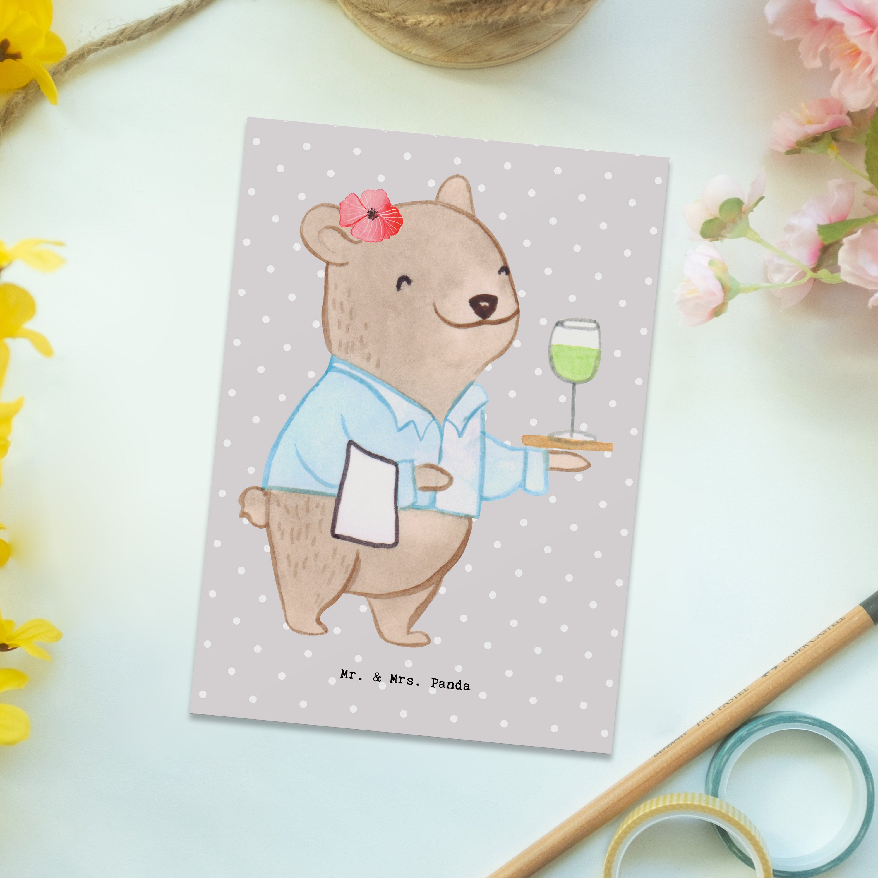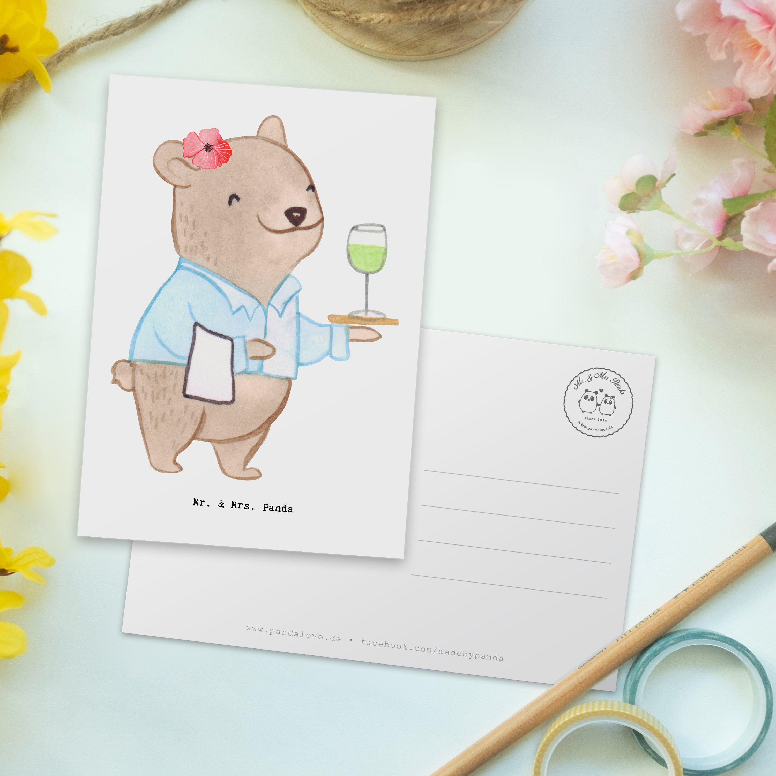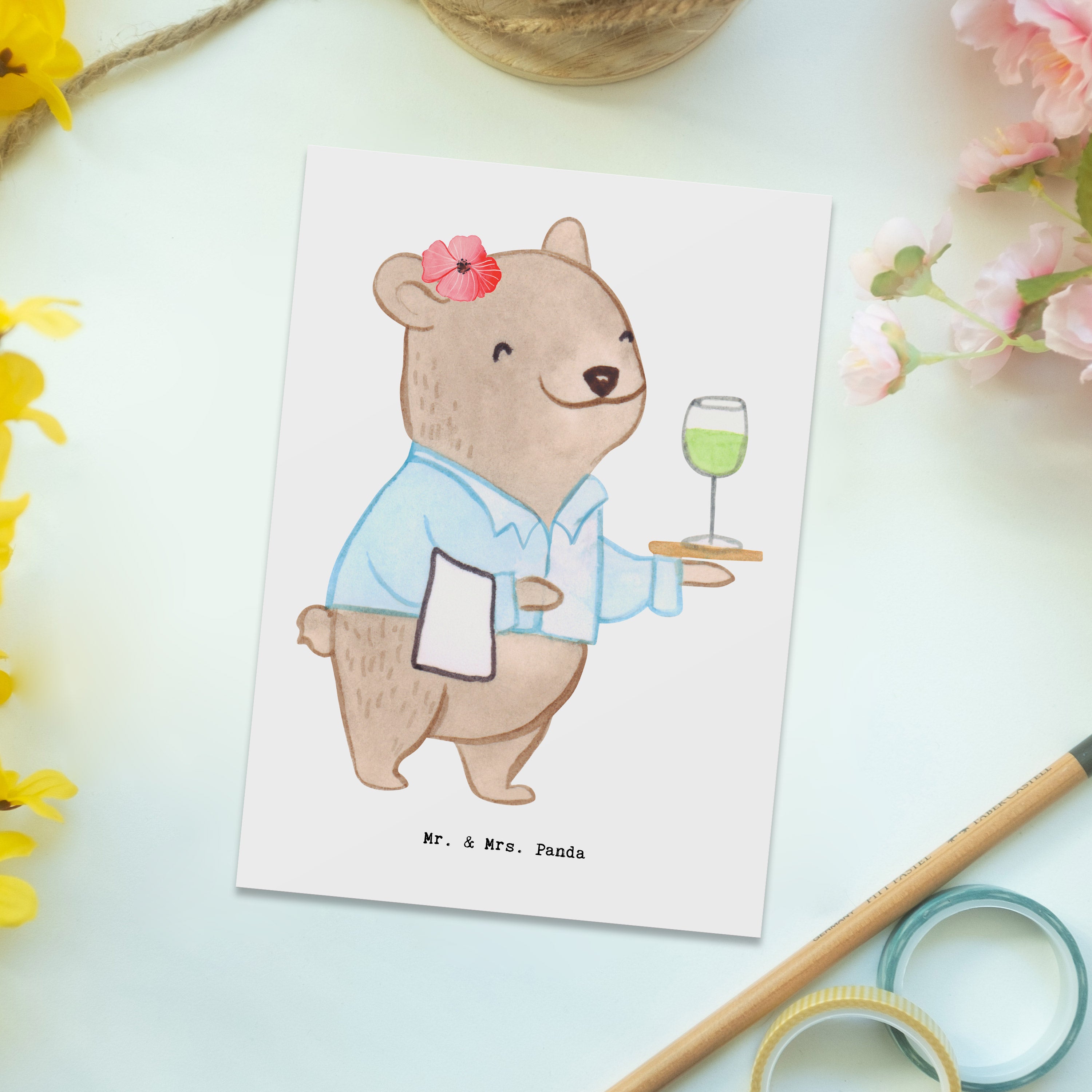 Postkarte Restaurantfachfrau mit Herz – Mr. & Mrs. Panda