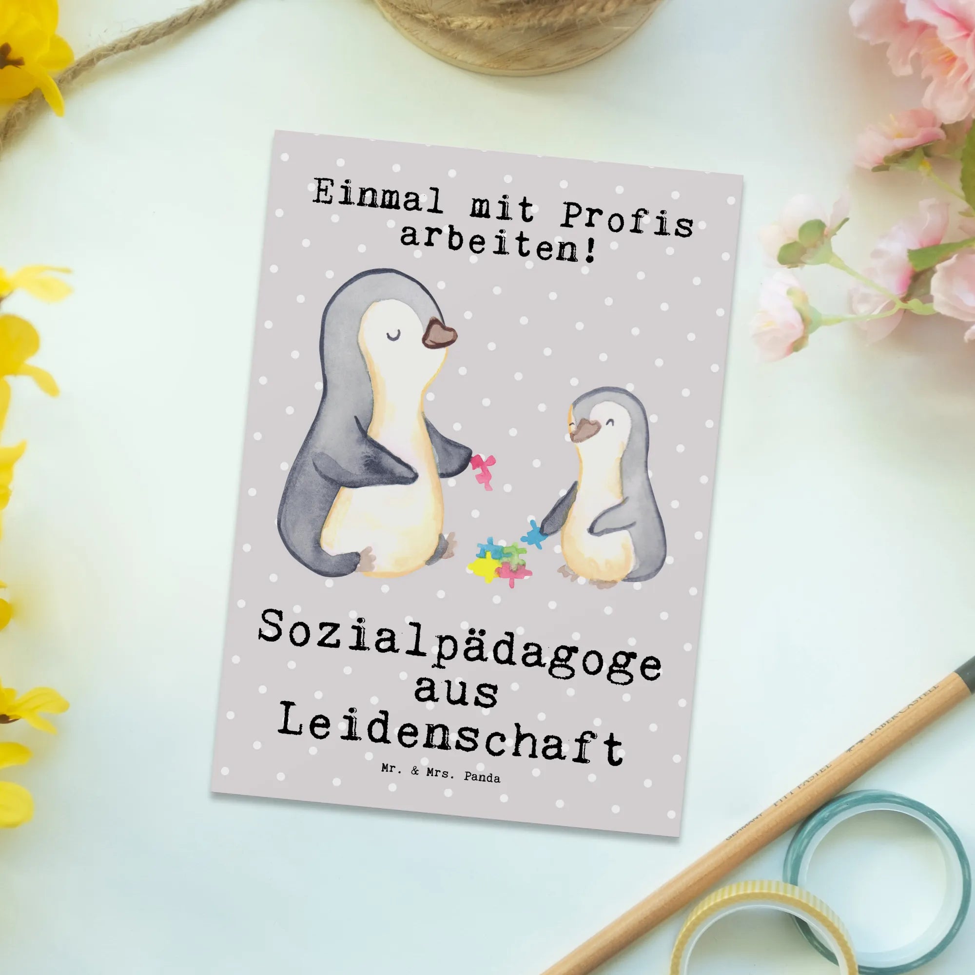 Postkarte Sozialpädagoge aus Leidenschaft - Grau Pastell