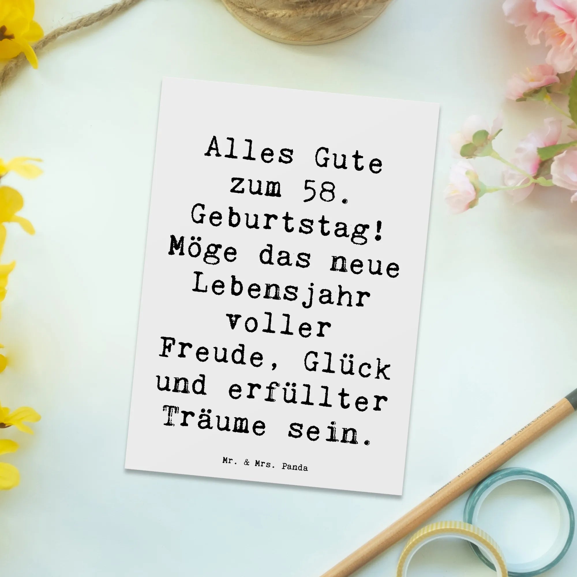Unsere Panda-Fans suchen auch nach: 58. Geburtstag, Alles Gute, Freude, Glück, Träume, neues Lebensjahr, herzliche Botschaft, Jubilar, Wohl, besondere Tag, Wünsche, Lächeln, unvergesslich, positive Energie, Familie, Freunde, enge Bekannte