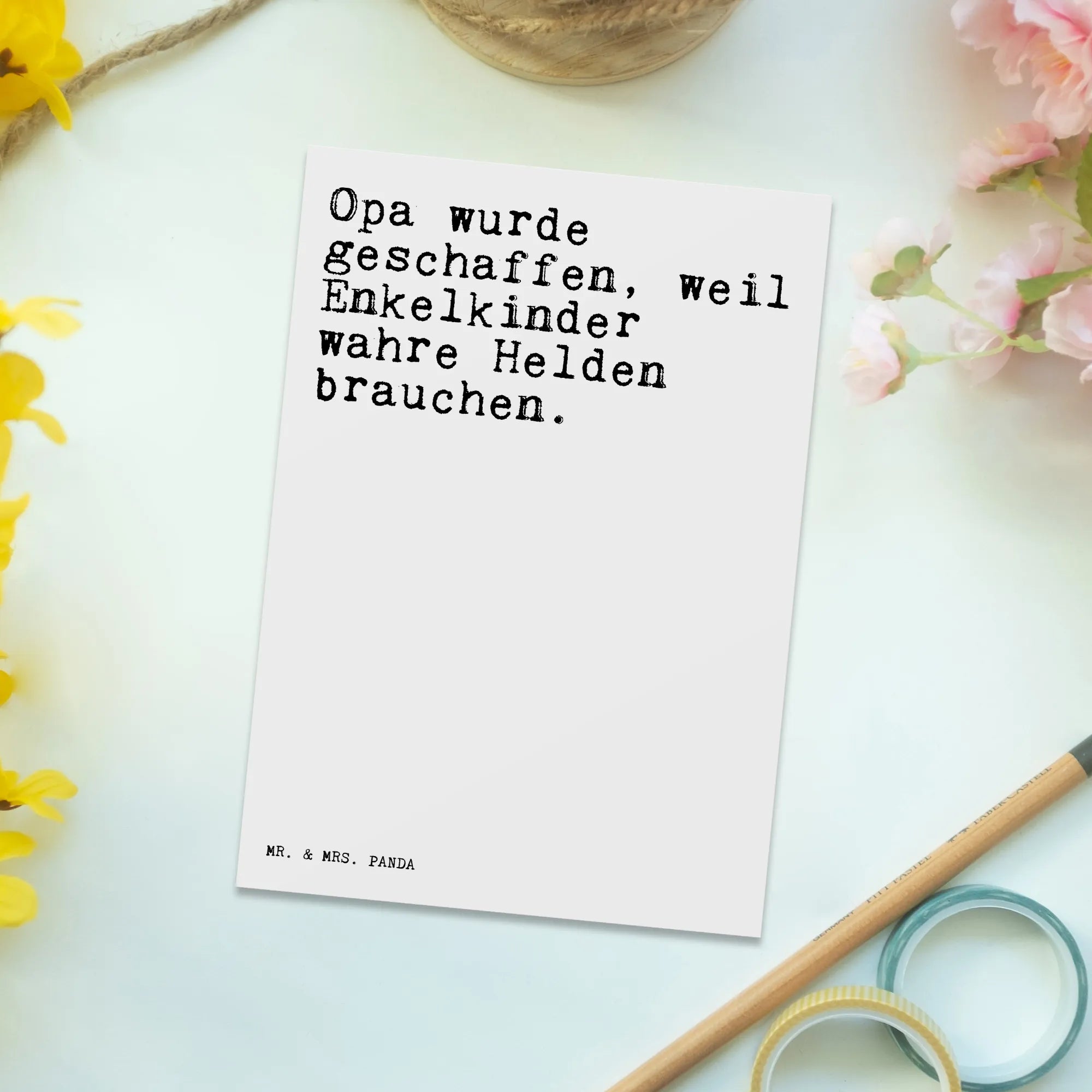 Postkarte Sprüche und Zitate Opa wurde geschaffen, weil Enkelkinder wahre Helden brauchen. - Weiß