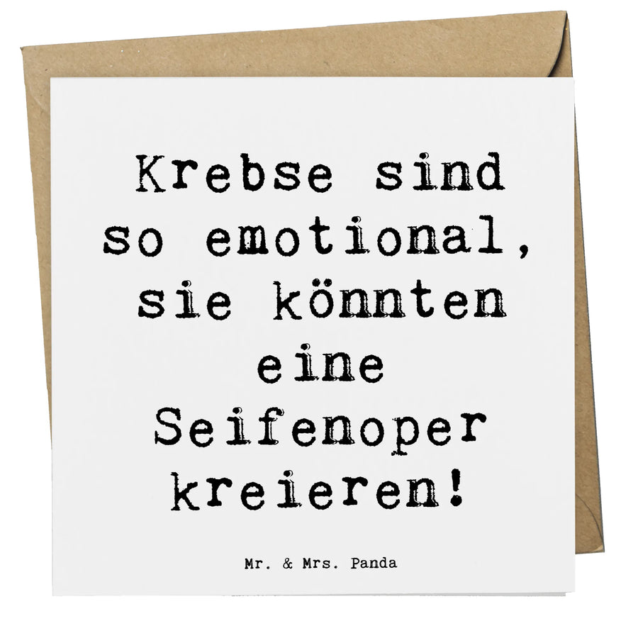 Entdecke unsere Deluxe Karte Krebs aus der Sternzeichen-Kollektion von Mr. & Mrs. Panda! Diese wunderschöne quadratische Karte ist ideal für viele Anlässe, ob Geburtstag, Hochzeit oder einfach als liebevolle Geste für einen besonderen Menschen. Sie ist nicht nur ein Geschenk, sondern ein kleines Stück Emotion. Krebse zeichnen sich durch ihre empathische Art und sensiblen Gefühle aus – und genau damit spielt diese Karte. Der Slogan "Krebse sind so emotional, sie könnten eine Seifenoper kreieren!" wird die Beschenkten zum Schmunzeln bringen und zeigt die liebevoll skizzierte Krebs-Darstellung auf der Vorderseite. Dadurch wird die Karte zu etwas ganz Einzigartigem.