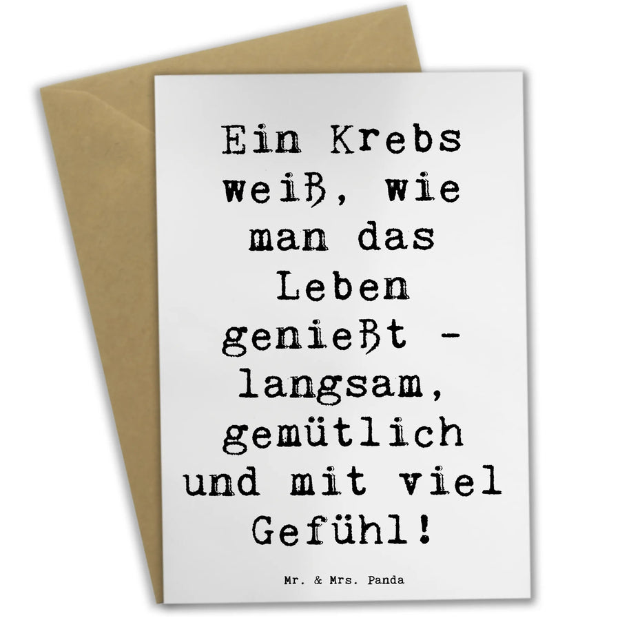 Mit dem Motiv des Sternzeichens Krebs und dem Spruch "Ein Krebs weiß, wie man das Leben genießt - langsam, gemütlich und mit viel Gefühl!" wird die Karte garantiert Herzen höher schlagen lassen.