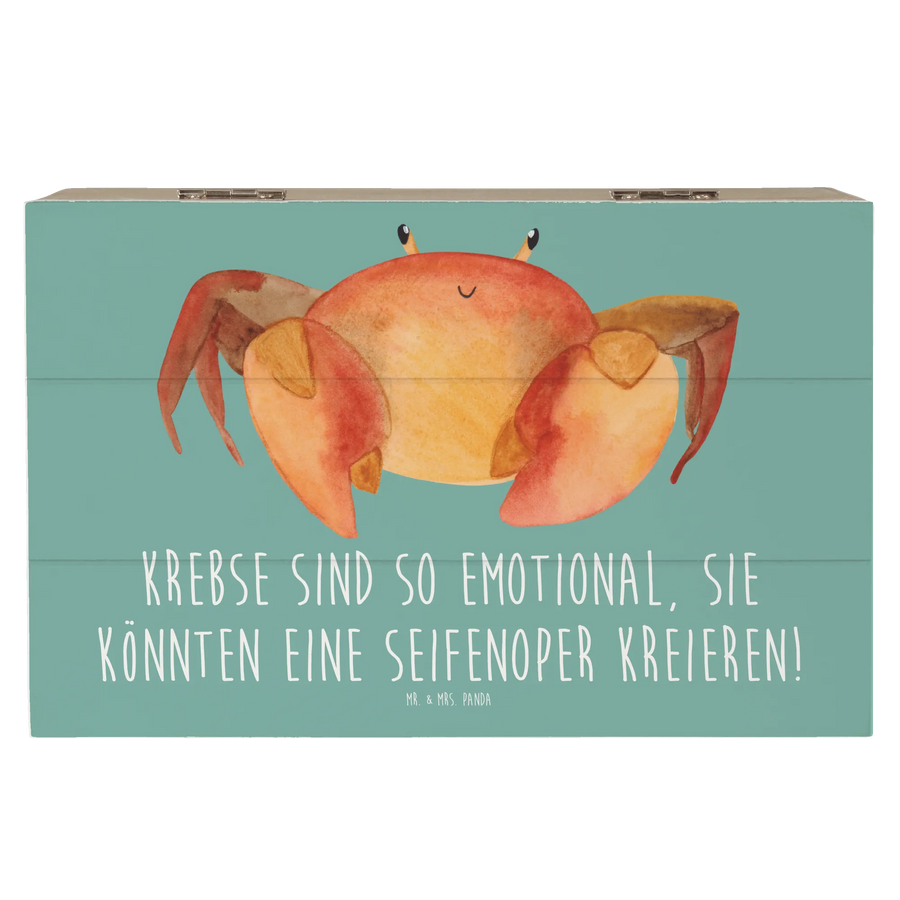 Die wunderschöne Holzkiste Krebs aus der Sternzeichen Kollektion von Mr. & Mrs. Panda ist das perfekte Geschenk für alle, die sich für Astrologie begeistern und ihre Emotionen lieben. Mit dem liebevoll handgezeichneten Krebsmotiv und dem witzigen Spruch "Krebse sind so emotional, sie könnten eine Seifenoper kreieren!" ist diese Kiste nicht nur ein praktischer Aufbewahrungsort, sondern auch ein echter Hingucker. Wenn du auf der Suche nach einem einzigartigen Geschenk für einen Krebsmenschen bist - sei es zum Geburtstag, zu Weihnachten oder einfach so, um jemandem eine Freude zu machen - dann ist diese Holzkiste genau das Richtige!