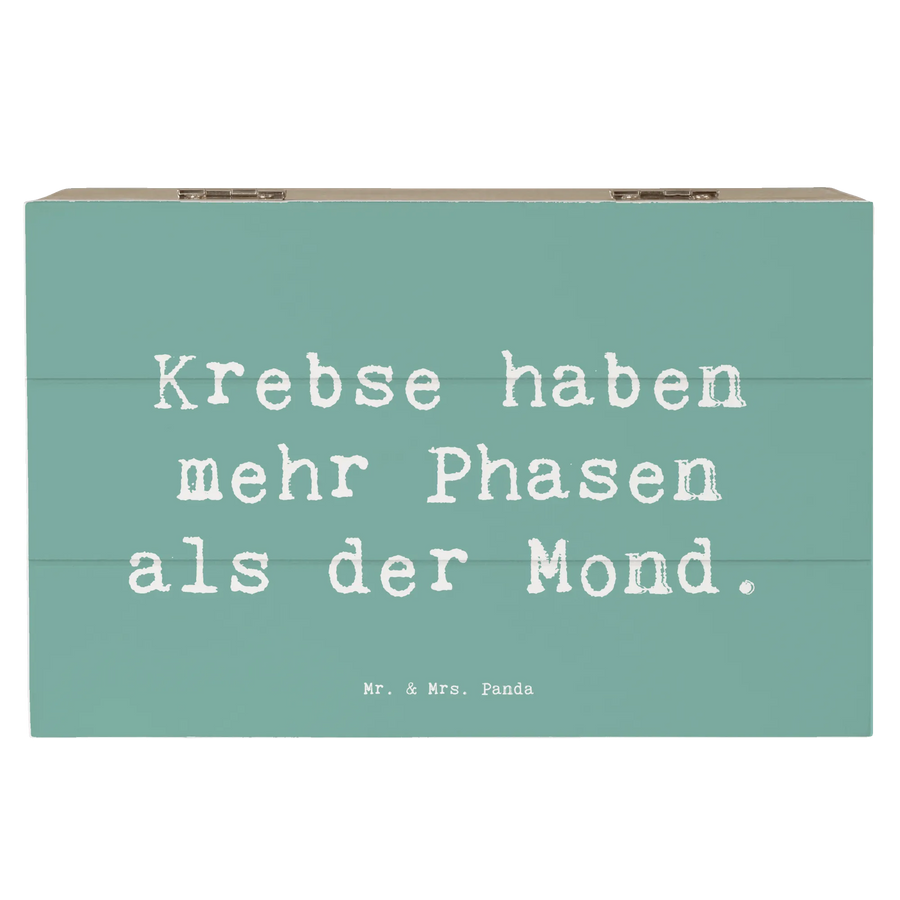 Die wunderschöne Holzkiste von Mr. & Mrs. Panda ist das ideale Geschenk für jeden Krebs-Geborenen! Mit dem liebevollen Spruch "Krebse haben mehr Phasen als der Mond" gespickt, enthält diese Erinnerungskiste nicht nur Platz für all deine besonderen Schätze, sondern bringt auch ein Lächeln auf die Gesichter deiner Liebsten.