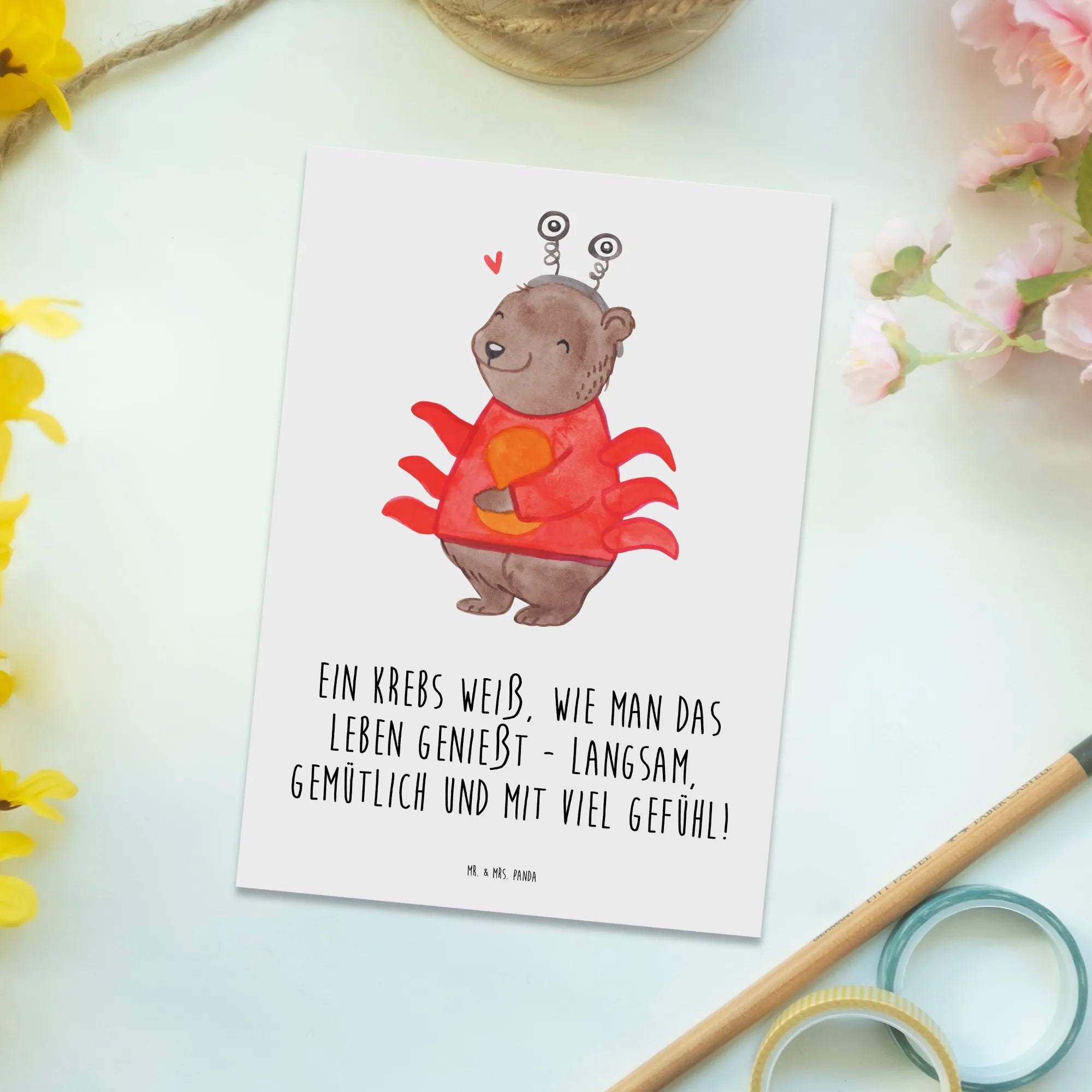 Diese Postkarte eignet sich perfekt für verschiedene Anlässe, sei es zum Geburtstag, als Dankeskarte oder einfach nur, um jemanden zu überraschen. Die sanften, handgezeichneten Motive von Mrs. Panda vermitteln ein Gefühl von Wärme und Geborgenheit, welches perfekt zu den Eigenschaften des Tierkreiszeichens Krebs passt.