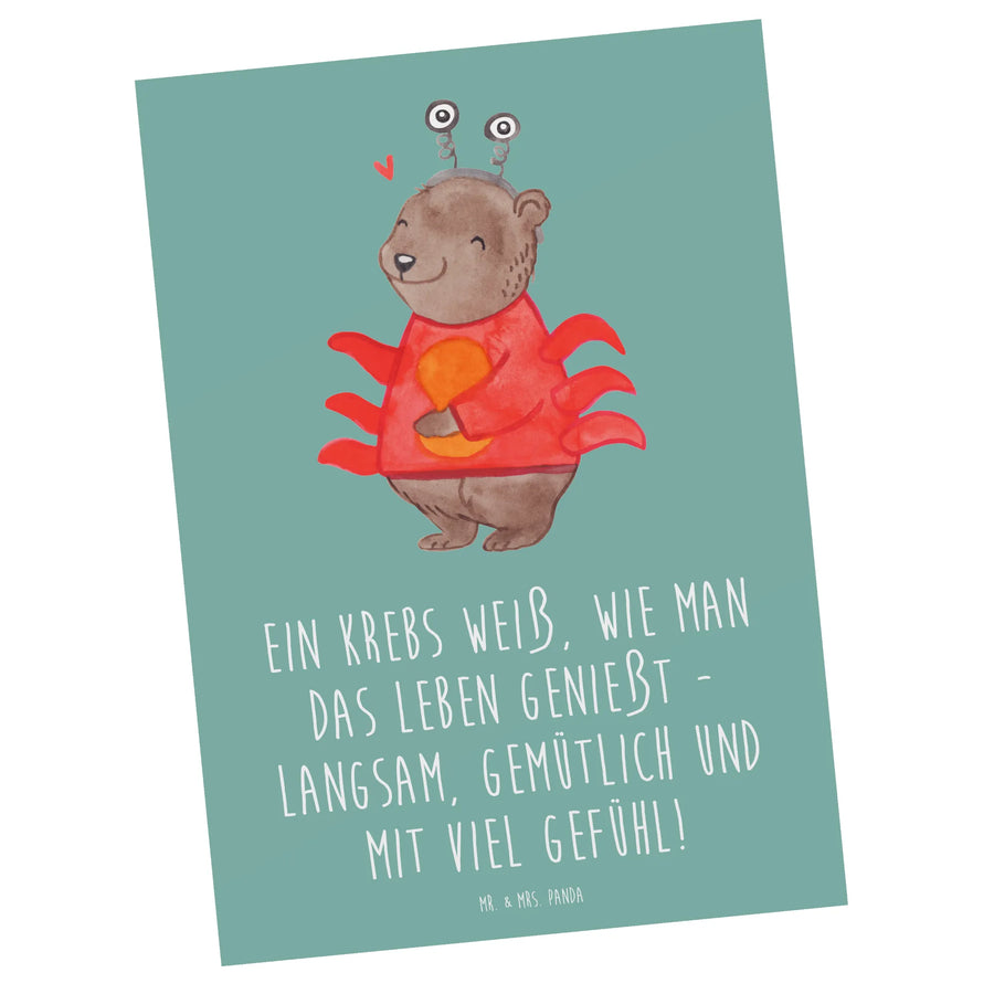 Die liebevoll gestaltete Postkarte Krebs aus der einzigartigen Sternzeichen-Kollektion von Mr. & Mrs. Panda ist das perfekte Geschenk für alle, die in der Zeit vom 22. Juni bis 22. Juli geboren sind. Diese süße Karte bringt nicht nur Freude, sondern auch den charmanten Spruch: "Ein Krebs weiß, wie man das Leben genießt - langsam, gemütlich und mit viel Gefühl!".