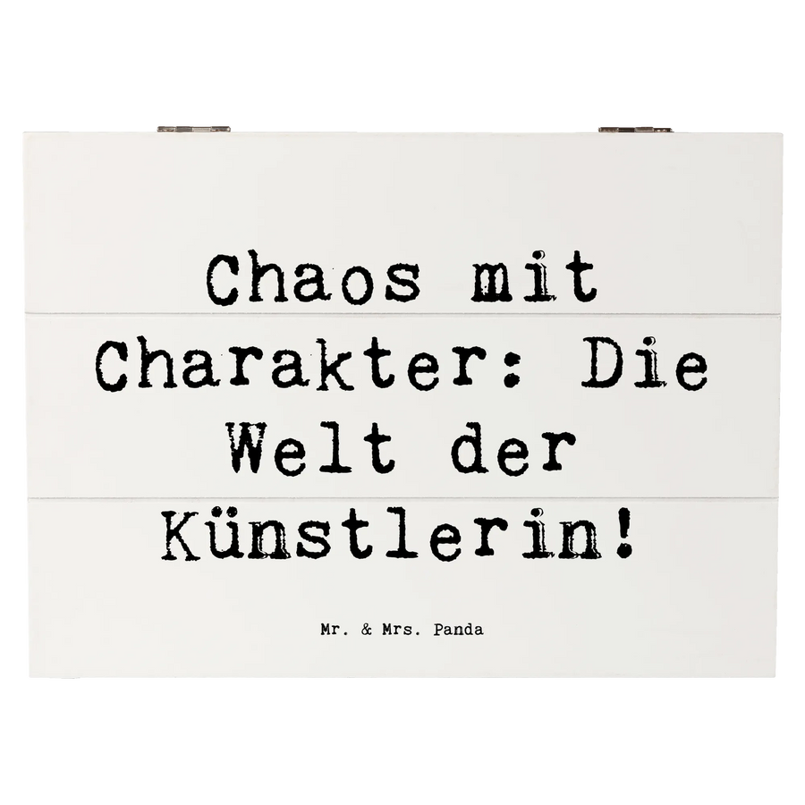 Die Holzkiste 'Künstlerin' von Mr. & Mrs. Panda ist der perfekte Begleiter für alle kreativen Köpfe und Kunstliebhaber. Mit ihrem liebevollen Design und dem inspirierenden Spruch 'Chaos mit Charakter: Die Welt der Künstlerin!' bringt diese Kiste nicht nur Ordnung in dein kreatives Chaos, sondern ist auch ein wunderschöner Hingucker in deinem Atelier oder Zuhause.