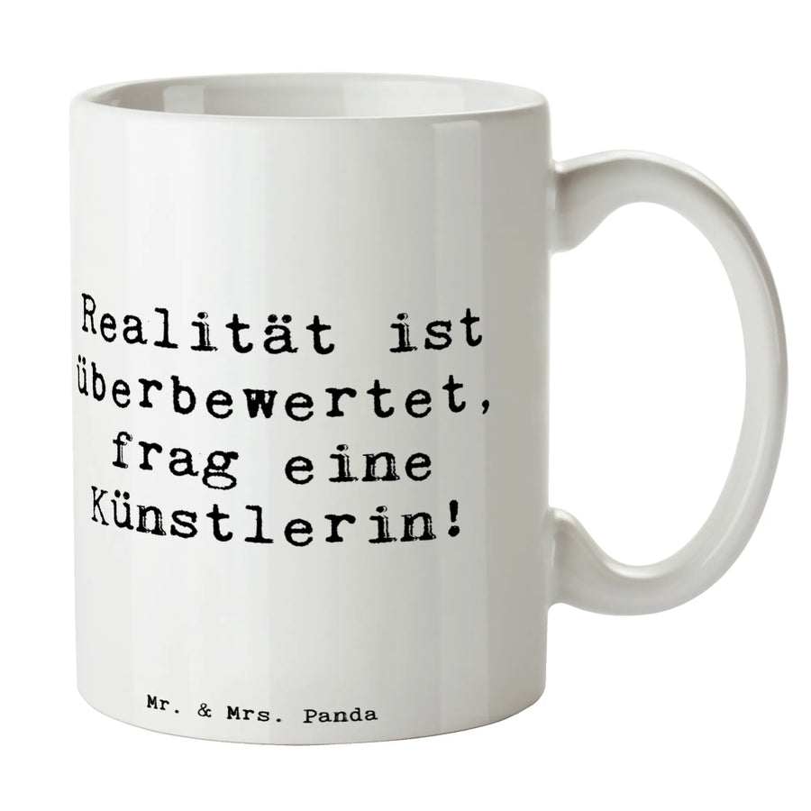 Mit dem witzigen Spruch "Realität ist überbewertet, frag eine Künstlerin!" sorgt sie für Schmunzeln und regt zugleich zum Nachdenken an. In ihrer hochwertigen Keramik-Qualität ist die Tasse sowohl mikrowellengeeignet als auch spülmaschinenfest, sodass sie nicht nur schön, sondern auch praktisch ist. Lange nach den ersten 2000 Spülgängen bleibt ihr Glanz erhalten, und sie wird zur treuen Begleiterin für jede kreative Auszeit.