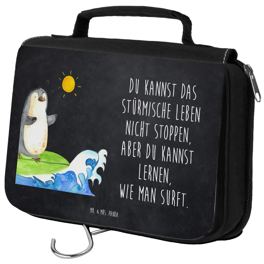 Kulturbeutel Pinguin Surfer - mit Spruch - Kreidetafel
