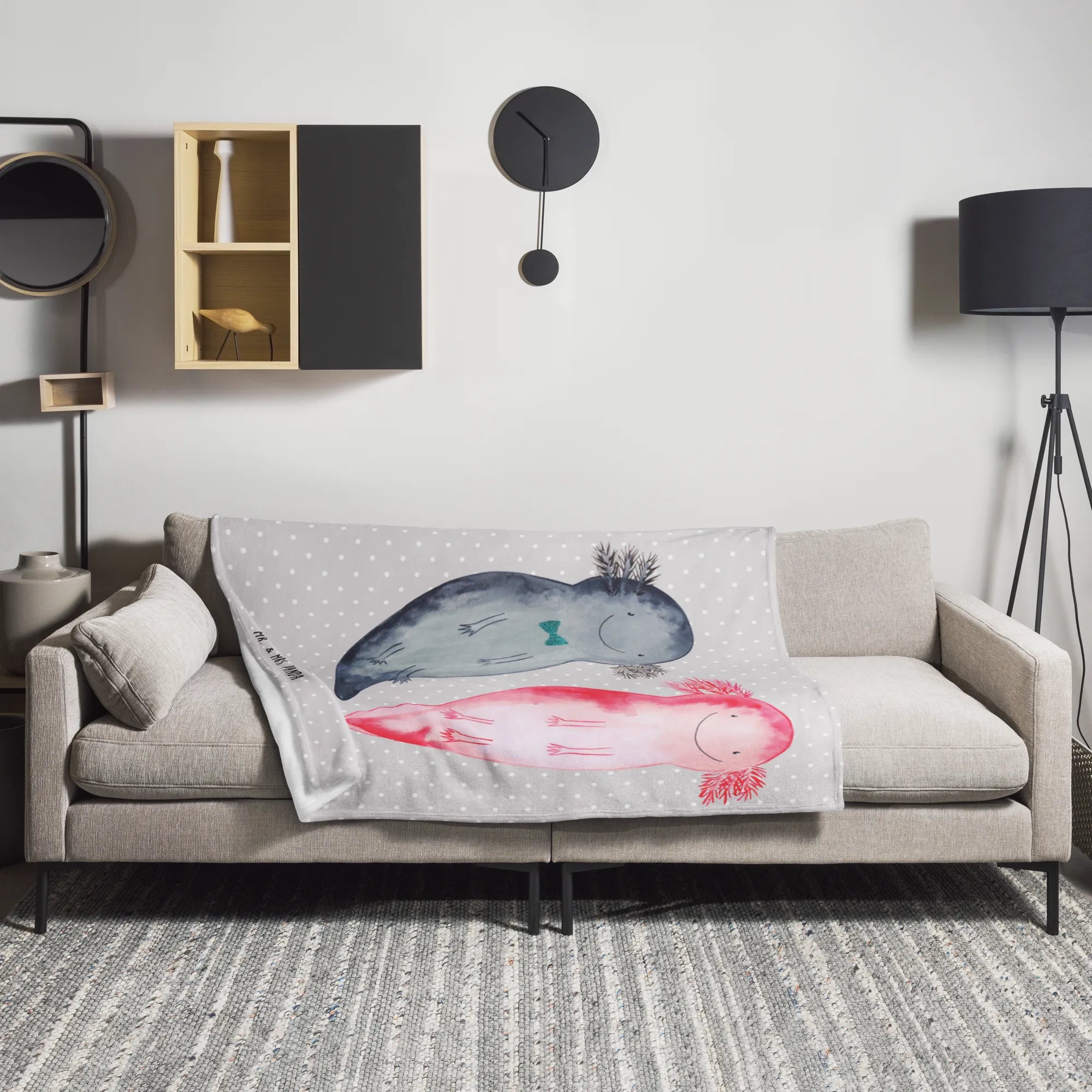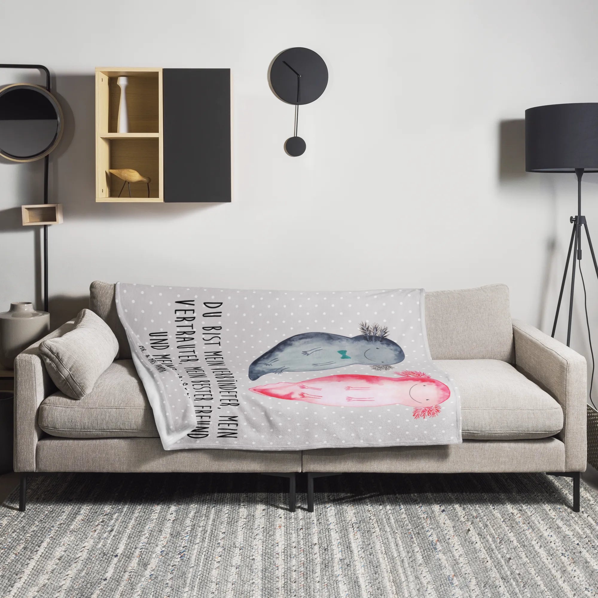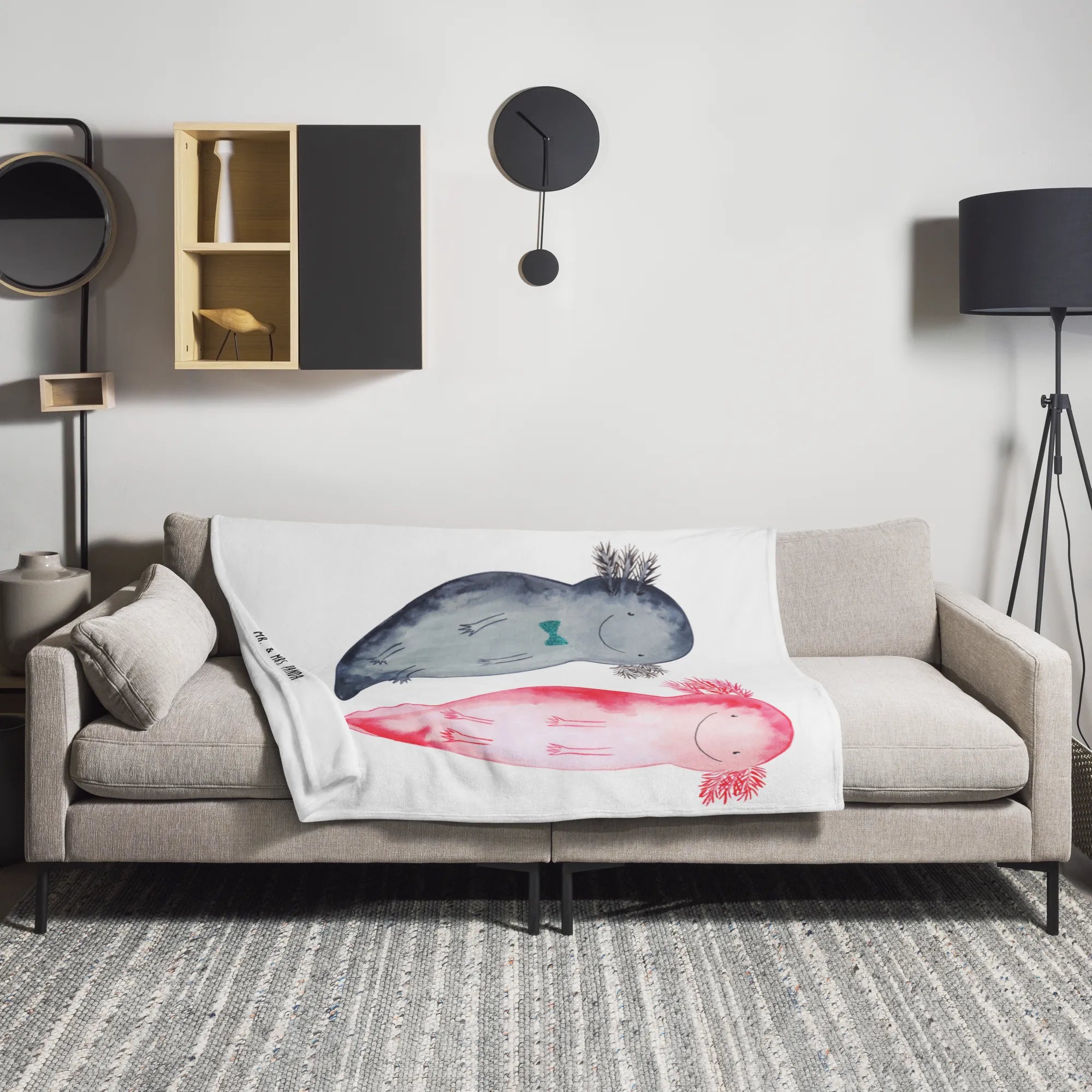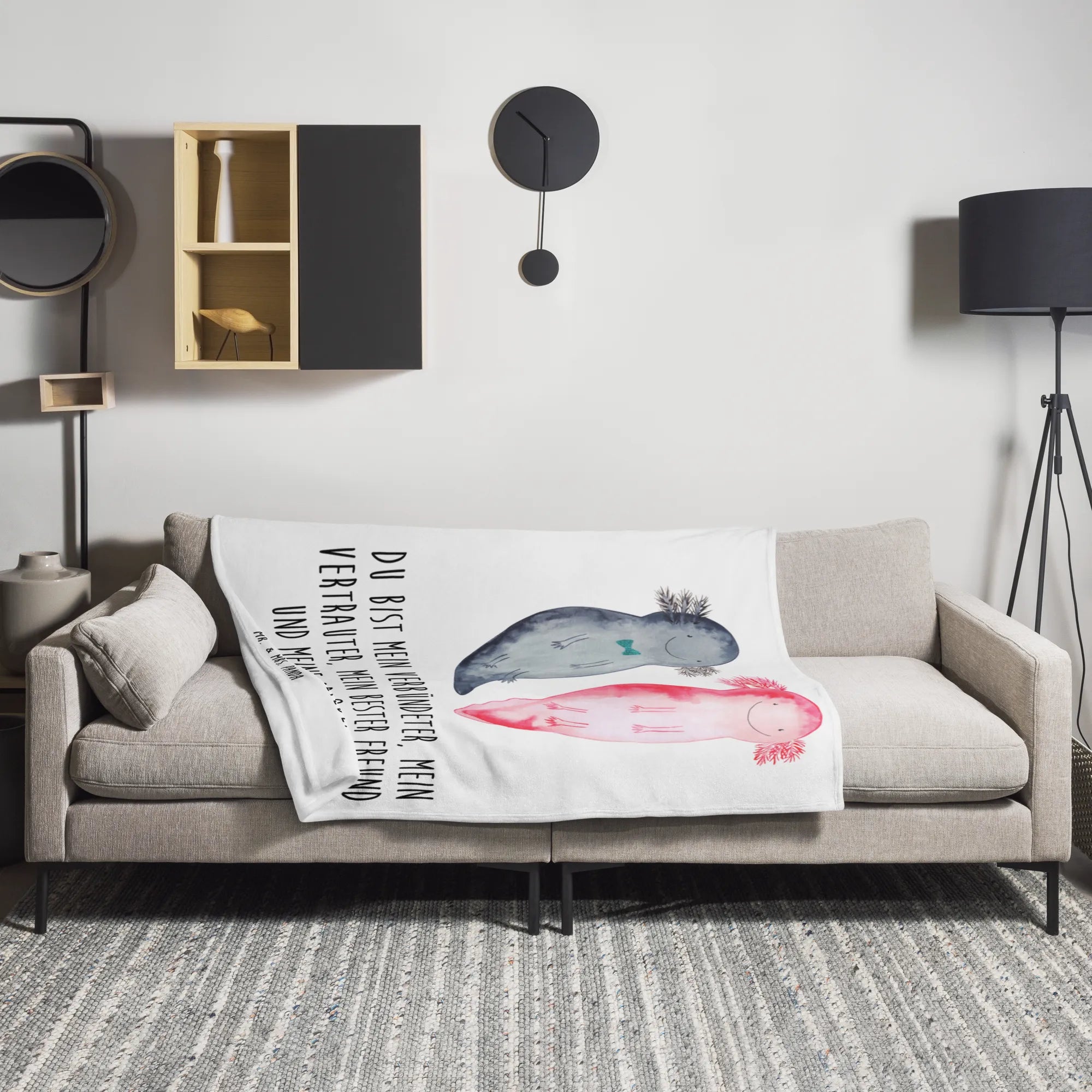 Kuscheldecke Axolotl Axel+Lotte - mit Spruch - Weiß