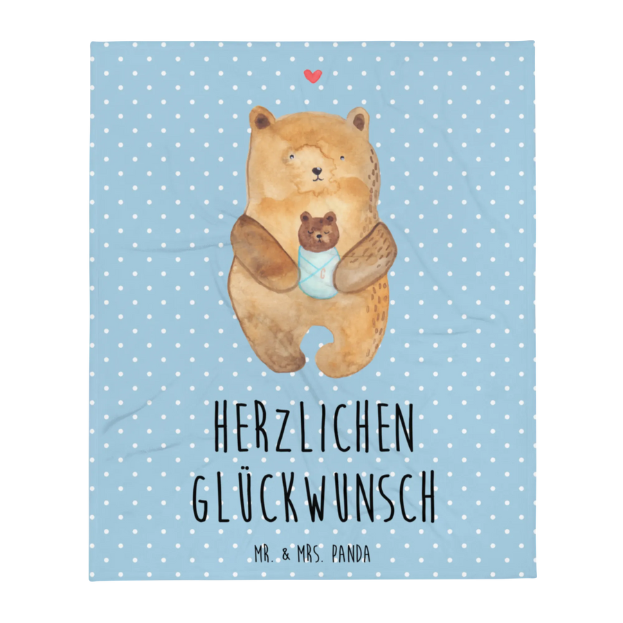 Kuscheldecke Bär mit Baby - mit Spruch - Blau Pastell