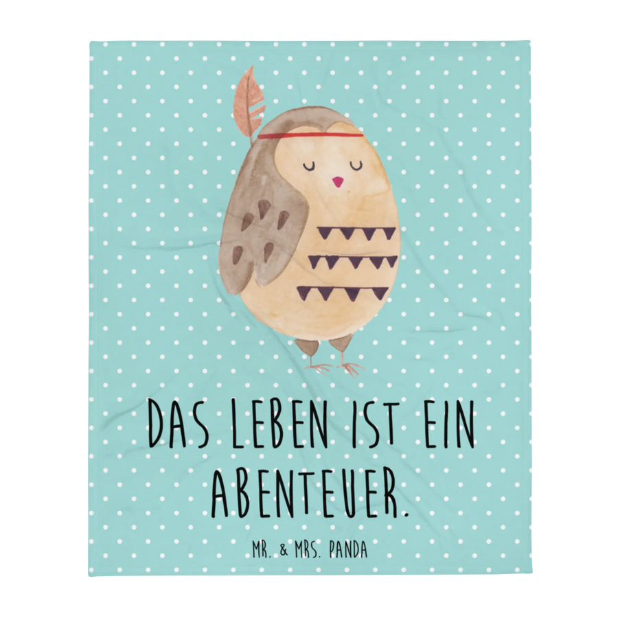 Kuscheldecke Eule Federschmuck - mit Spruch - Türkis Pastell
