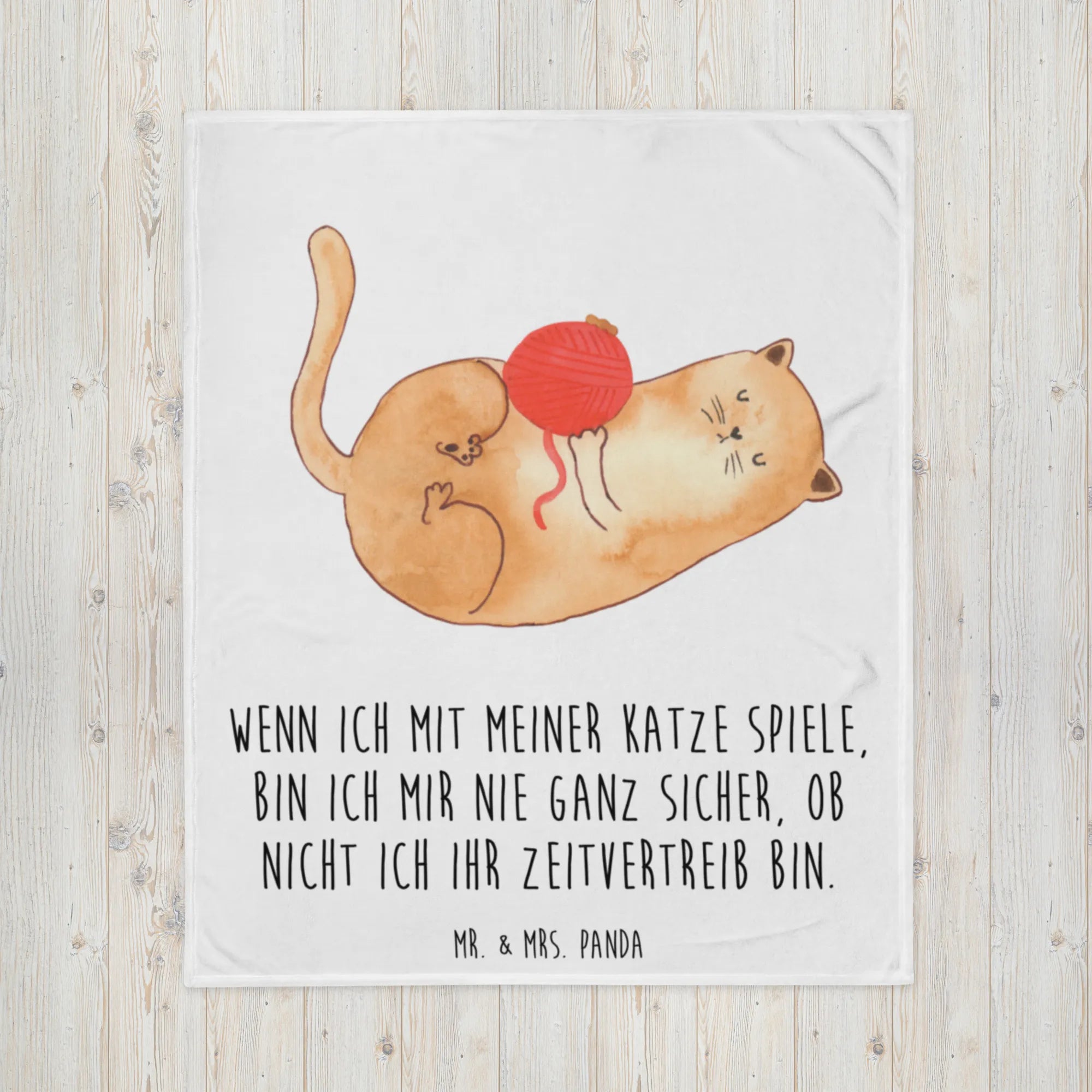 Katzen Wollknäul Motiv – Verspielte Mieze mit Wollknäuel | Mr. & Mrs. Panda Geschenk für Katze Fans
