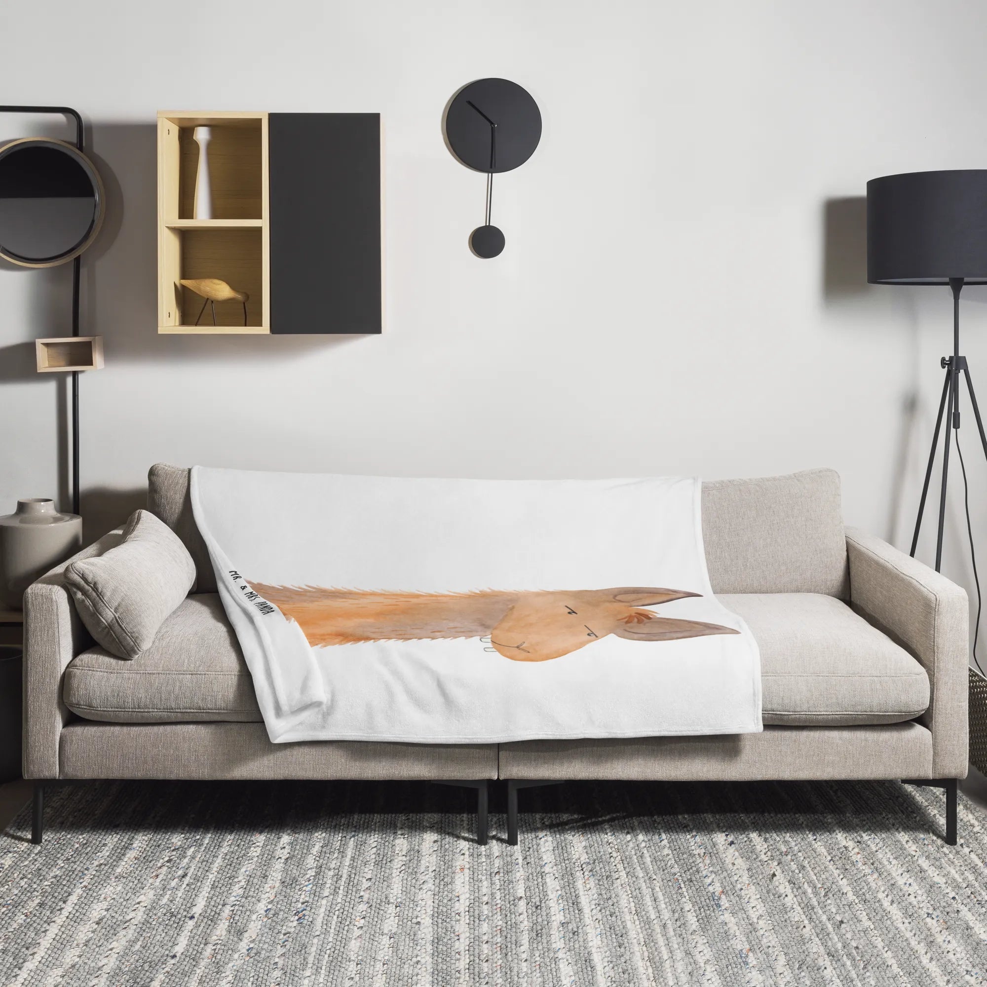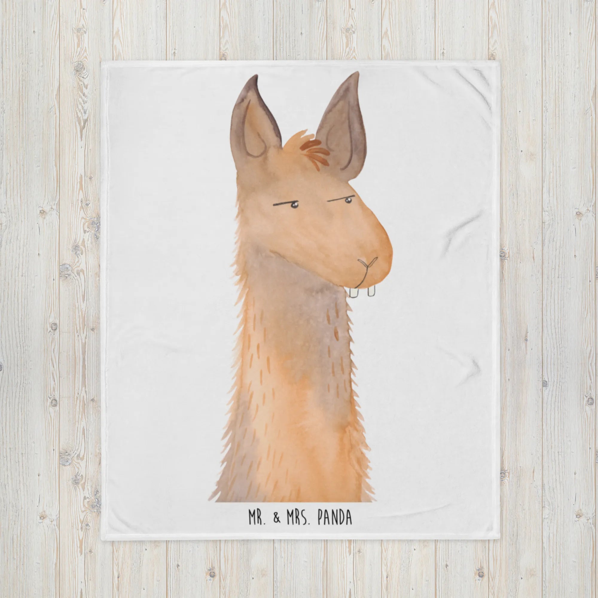 Kuscheldecke Lamakopf genervt - mit Spruch - Weiß