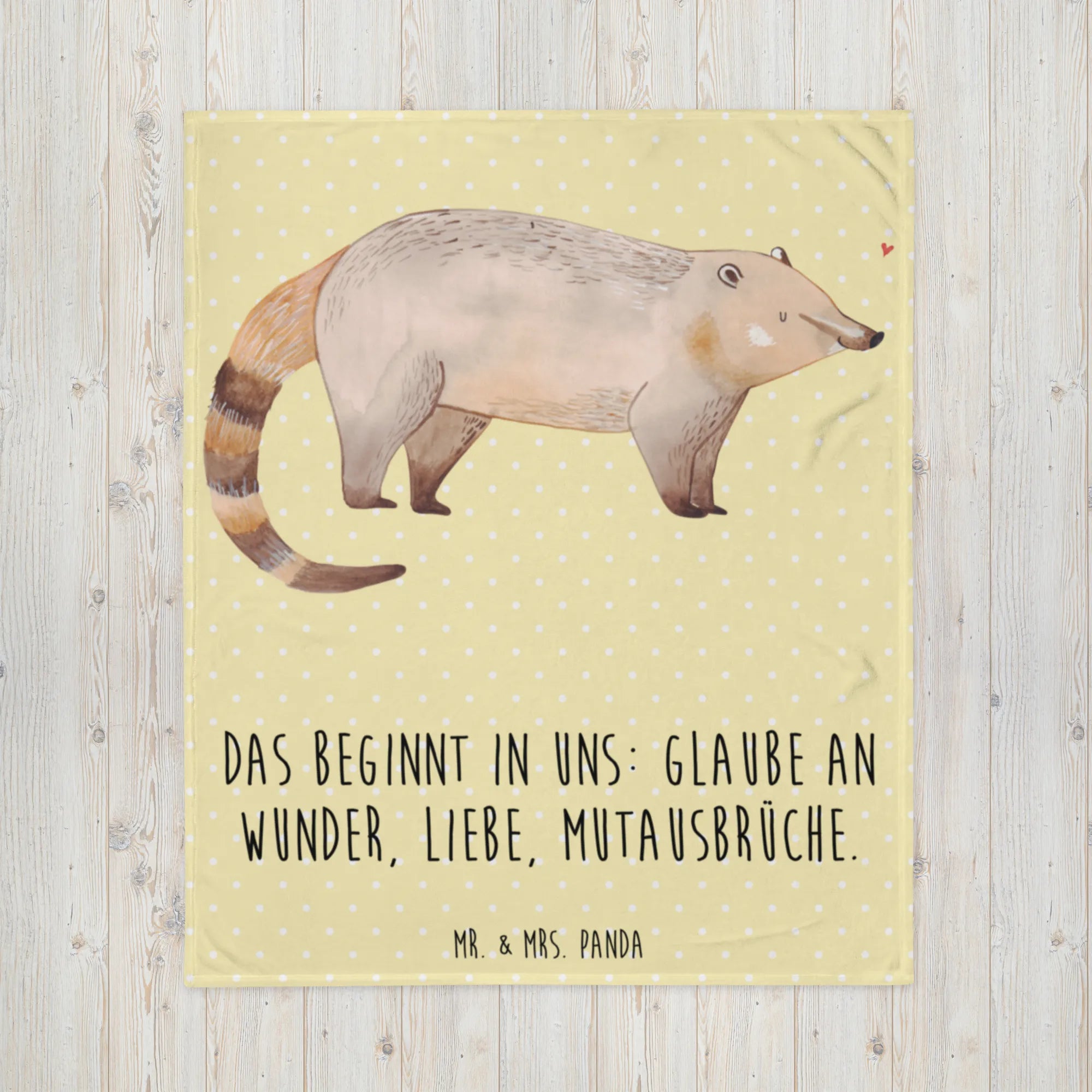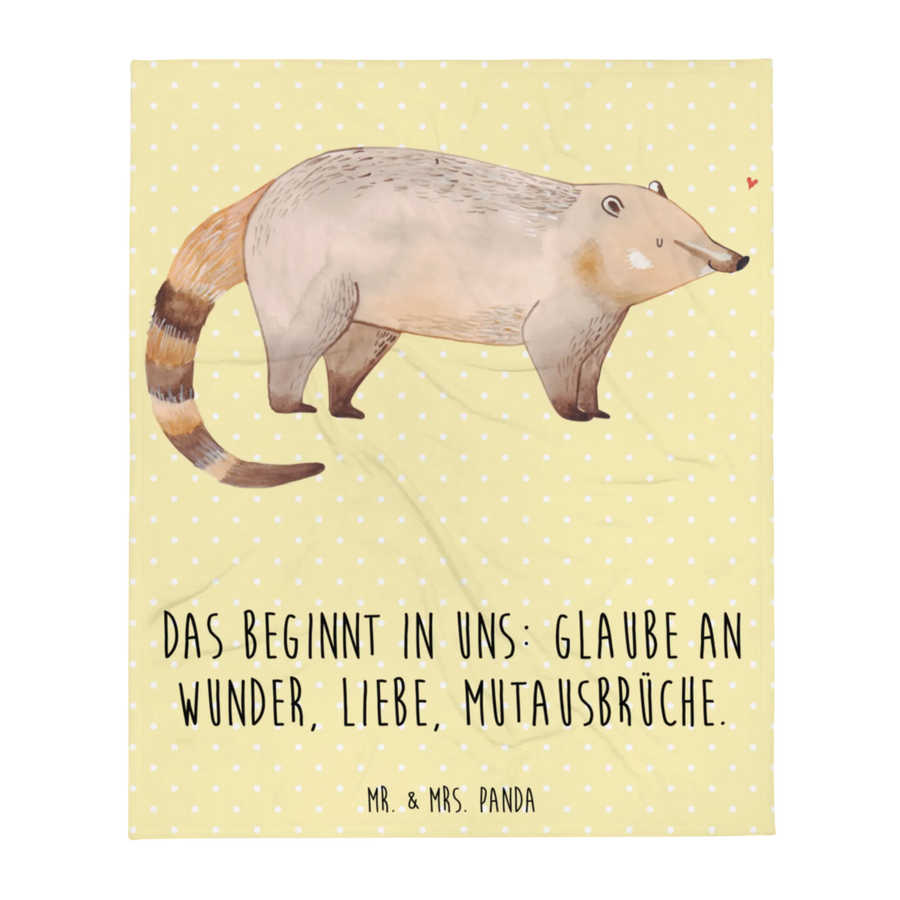 Kuscheldecke Nasenbaer - mit Spruch - Gelb Pastell