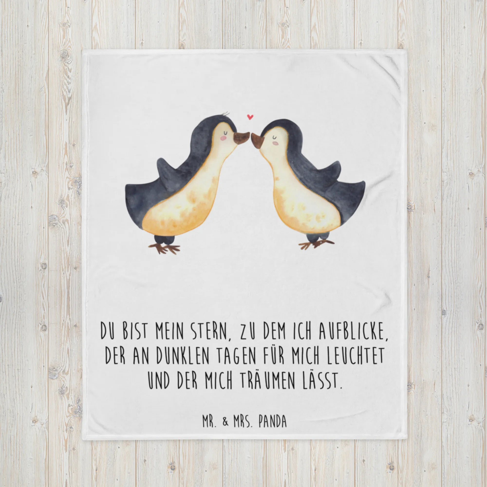 Kuscheldecke Pinguin Liebe - mit Spruch - Weiß