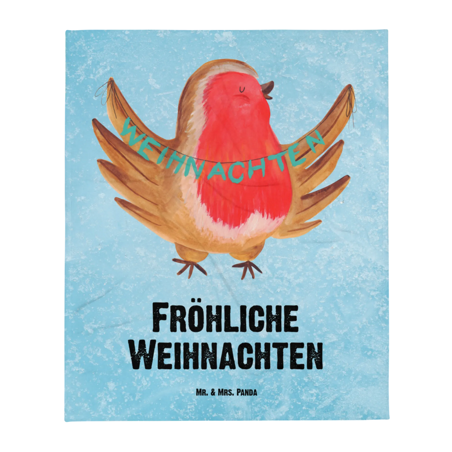 Kuscheldecke Rotkehlchen Weihnachten - mit Spruch - Eisblau