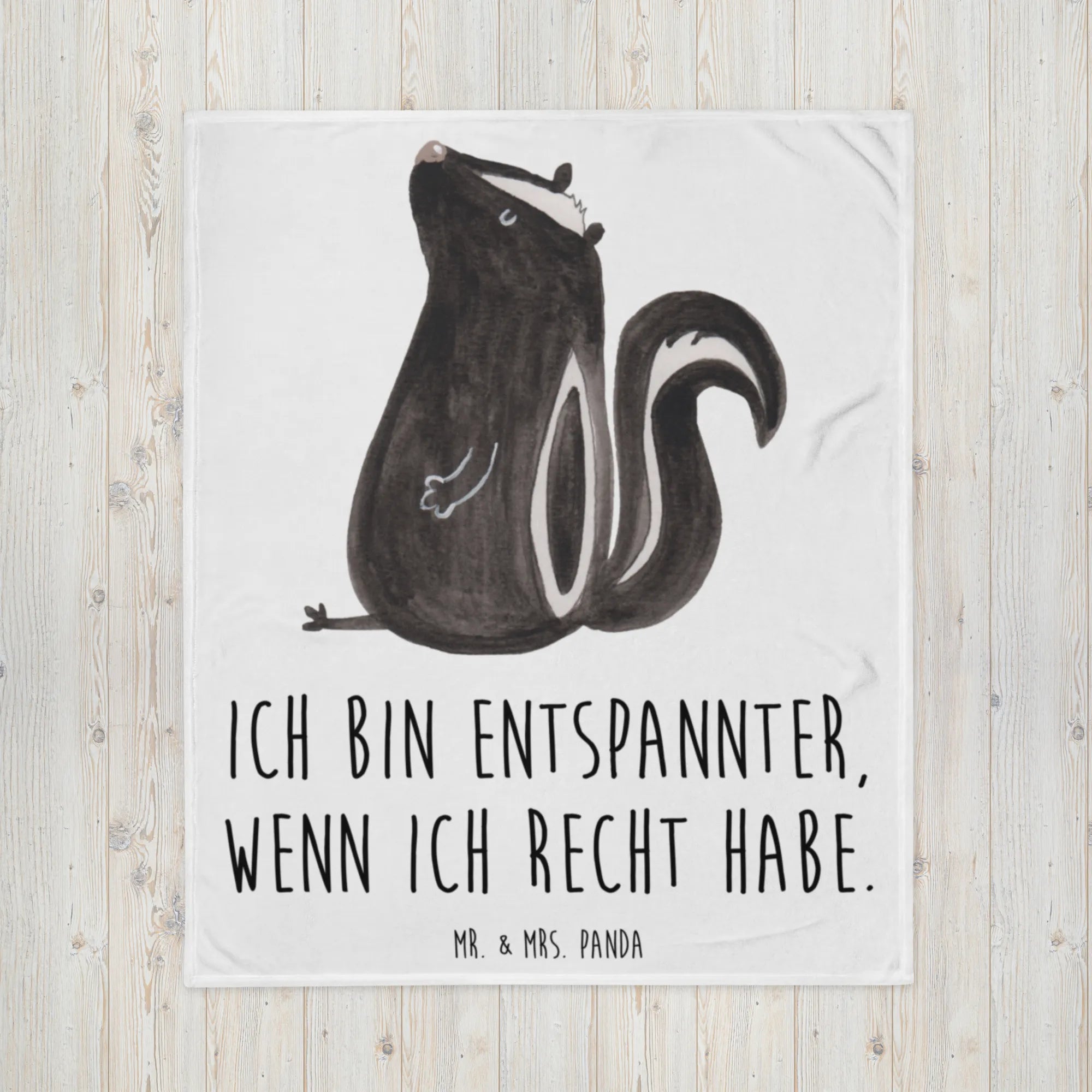 Kuscheldecke Stinktier Sitzen - mit Spruch - Weiß