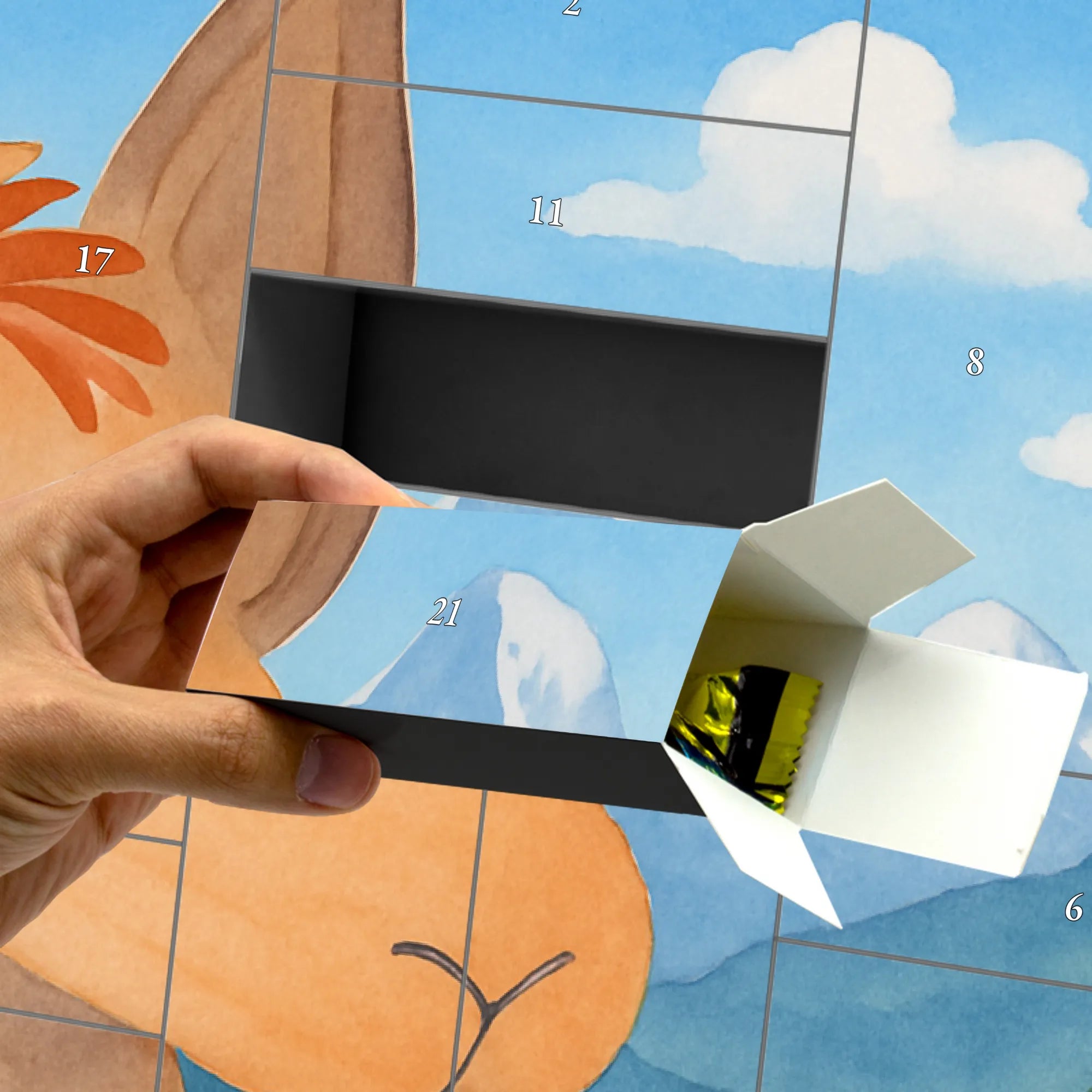 Unser Adventskalender zum Befüllen von Mr. & Mrs. Panda macht das Warten aufs Christkind noch schöner! Der Adventskalender zum Befüllen ist liebevoll gestaltet, mit zauberhaften Motiven und warmen Sprüchen bedruckt – typisch Mr. & Mrs. Panda. Auf der Frontseite findest du eine niedliche Zeichnung von Mrs. Panda, die sofort ein Lächeln schenkt. Der Kalender besteht aus stabilem Adventskalender Karton und verfügt über 24 praktische Schachteln zum individuellen Bestücken. Die Druckqualität ist brillant, die Oberfläche seidenmatt und fühlt sich edel an. Eine integrierte Aufstellvorrichtung sorgt dafür, dass der Kalender dekorativ steht, zum Beispiel auf dem Sideboard oder der Fensterbank. Wichtig: Der Kalender ist nicht personalisierbar und wird ohne Inhalt geliefert, damit du ihn ganz nach deinem Geschmack befüllen kannst. Maße: Breite: 619 mm, Höhe: 405 mm, Tiefe: 50 mm. Ob für Kinder, Freunde oder dich selbst – dieser Adventskalender zum Befüllen bringt jeden Tag eine kleine Freude und ist gleichzeitig ein hübsches Deko-Objekt in der Vorweihnachtszeit.