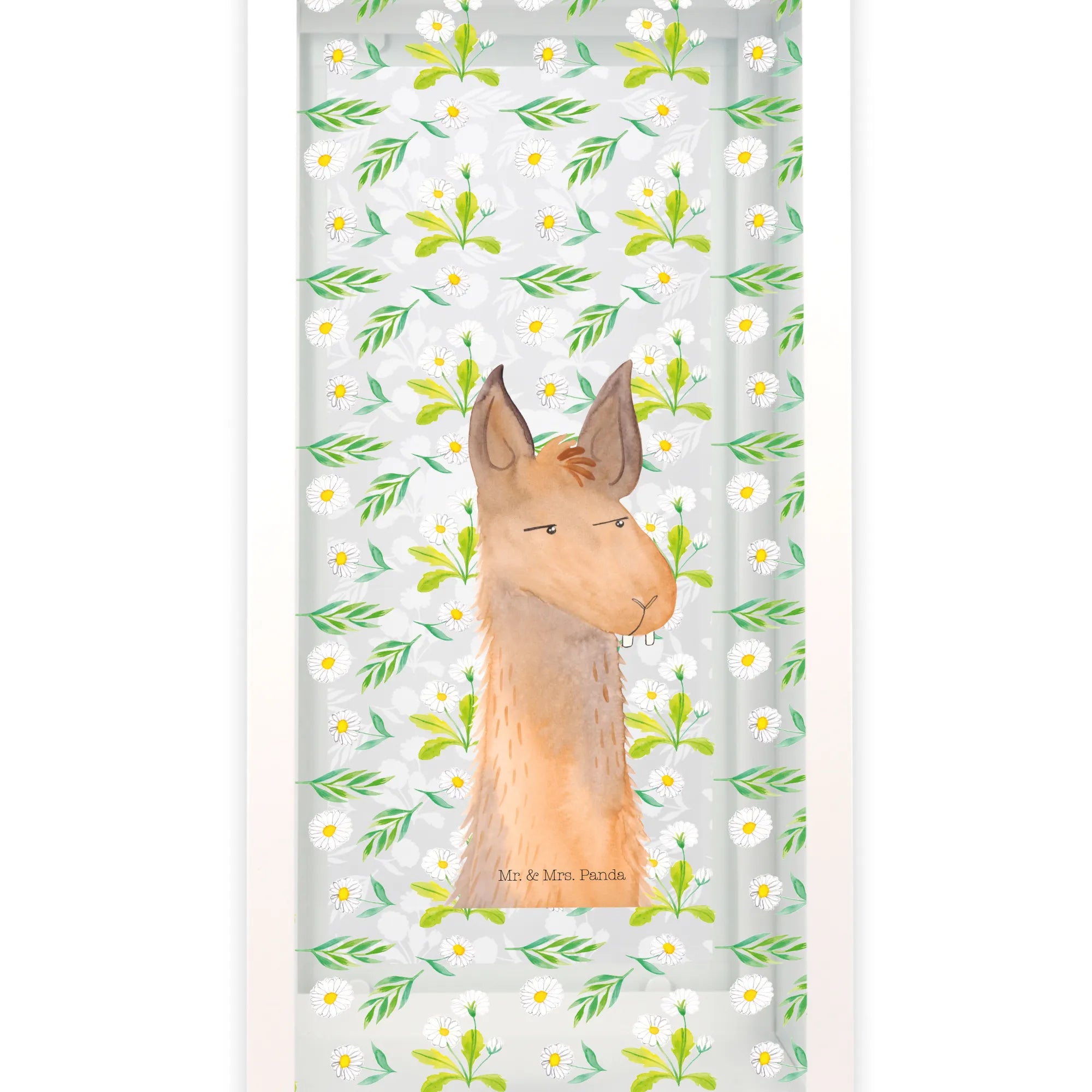 Die Deko Laterne zeigt einen genervt blickenden Lamakopf und gehört zur speziellen Lama-Kollektion von Mr. & Mrs. Panda. Lamas sind die Königstiere der Tierwelt und bringen einen Hauch der Coolness in deinen Garten! Diese Laterne ist ideal, um Freude zu verbreiten und ist dabei ein tolles Geschenk für Freunde, beste Freundinnen oder sogar für den Chef oder die Chefin im Büroalltag. Sie bringt ein Lächeln in jedes Büro und läutet die Entspannung ein, sobald die Arbeitszeit vorbei ist.