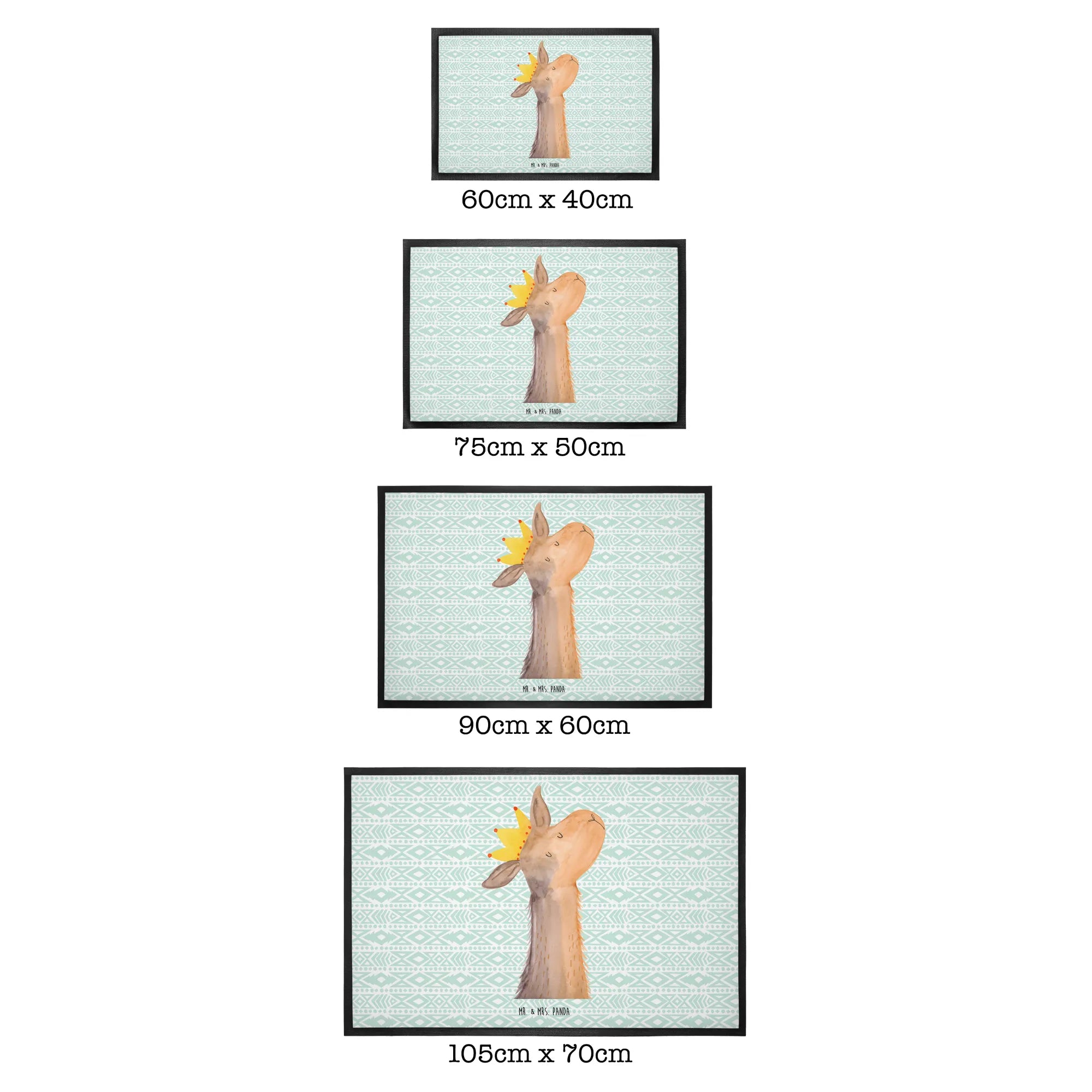 Die Fußmatte "Lamakopf König" aus der Lama-Kollektion von Mr. & Mrs. Panda ist nicht nur ein Hingucker, sondern auch ein praktisches Must-Have für dein Zuhause. Ob vor der Haustür oder im Eingangsbereich, diese wunderschöne und hochfunktionale Fußmatte sorgt dafür, dass Schmutz und Dreck von deinen Schuhen ferngehalten werden. Mit ihren Abmessungen von 60 x 90 cm bietet sie genügend Platz, um das Betreten deiner Wohnung zu erleichtern.