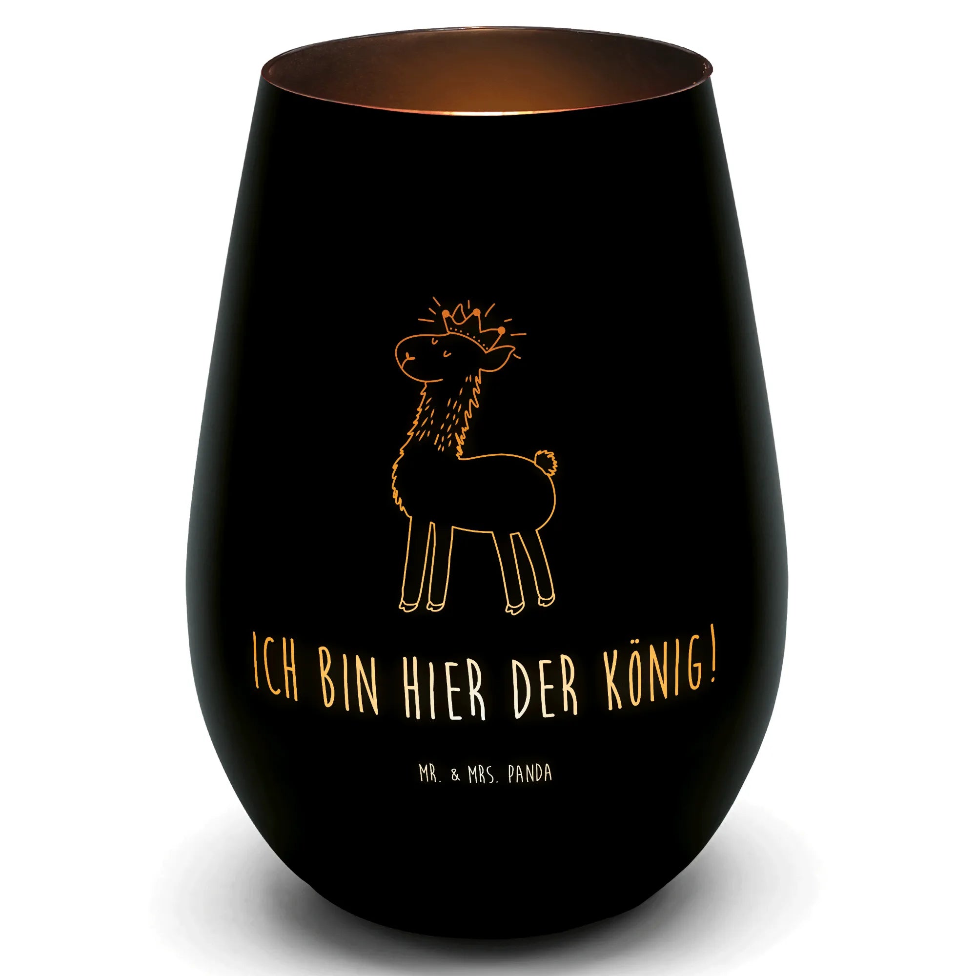 Entdecke unser wunderschönes Gold Windlicht mit dem einzigartigen Motiv "Lama König" aus der Lama - Kollektion von Mr. & Mrs. Panda. Dieses edle Windlicht ist perfekt für alle, die die pure Coolness der Tierwelt und eine gemütliche Atmosphäre lieben. Es eignet sich ideal, um deinem Zuhause an romantischen Abenden oder feierlichen Sommernächten ein warmes Licht zu verleihen.