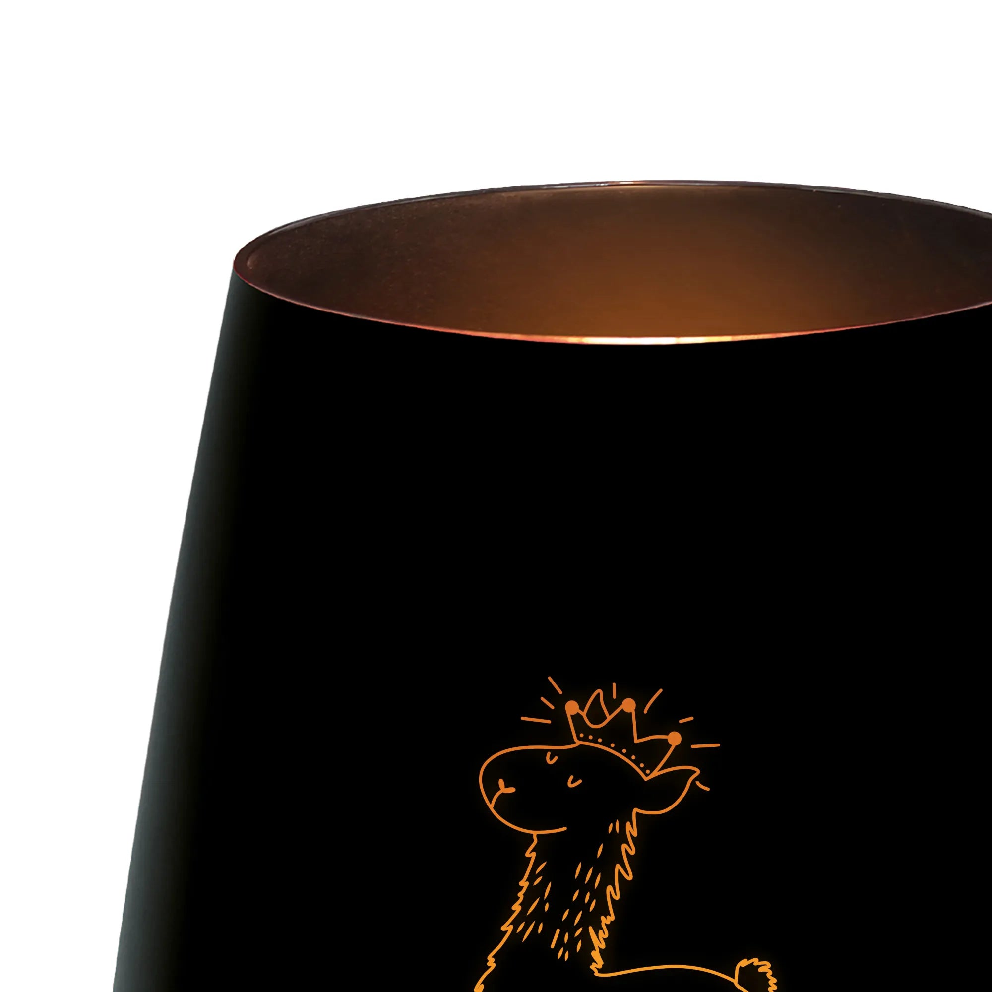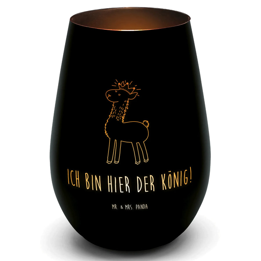 Glas Windlicht Lama König - Schwarz