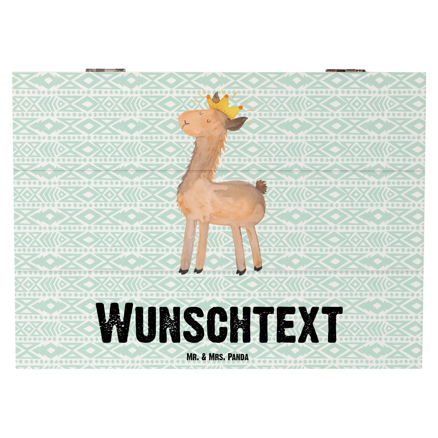 Personalisierte Holzkiste Lama König - 25 x 18 cm - Aztekenblau