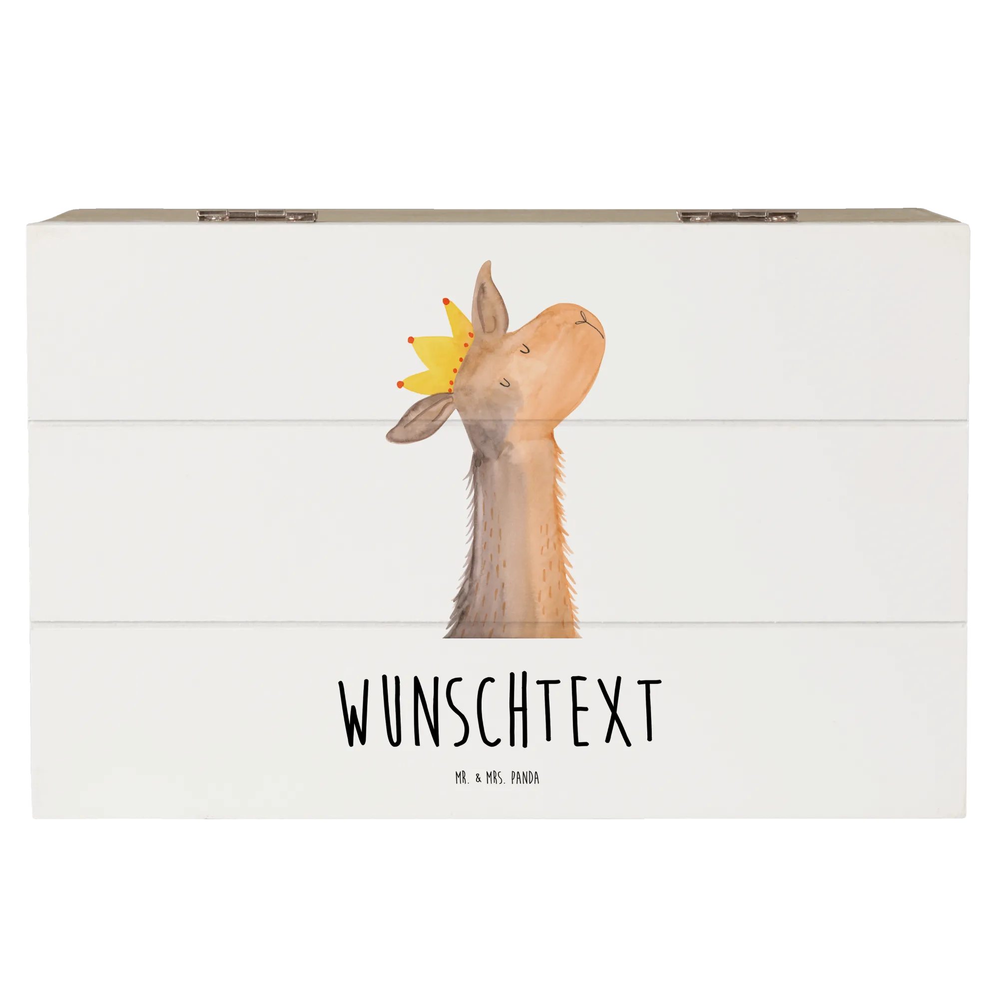 Suchst du das perfekte Geschenk für einen Lama-Fan oder möchtest du deine eigenen Schätze stilvoll aufbewahren? Die personalisierte Holzkiste mit dem süßen Lamakopf König aus der beliebten Lama-Kollektion von Mr. & Mrs. Panda ist genau das richtige für dich!