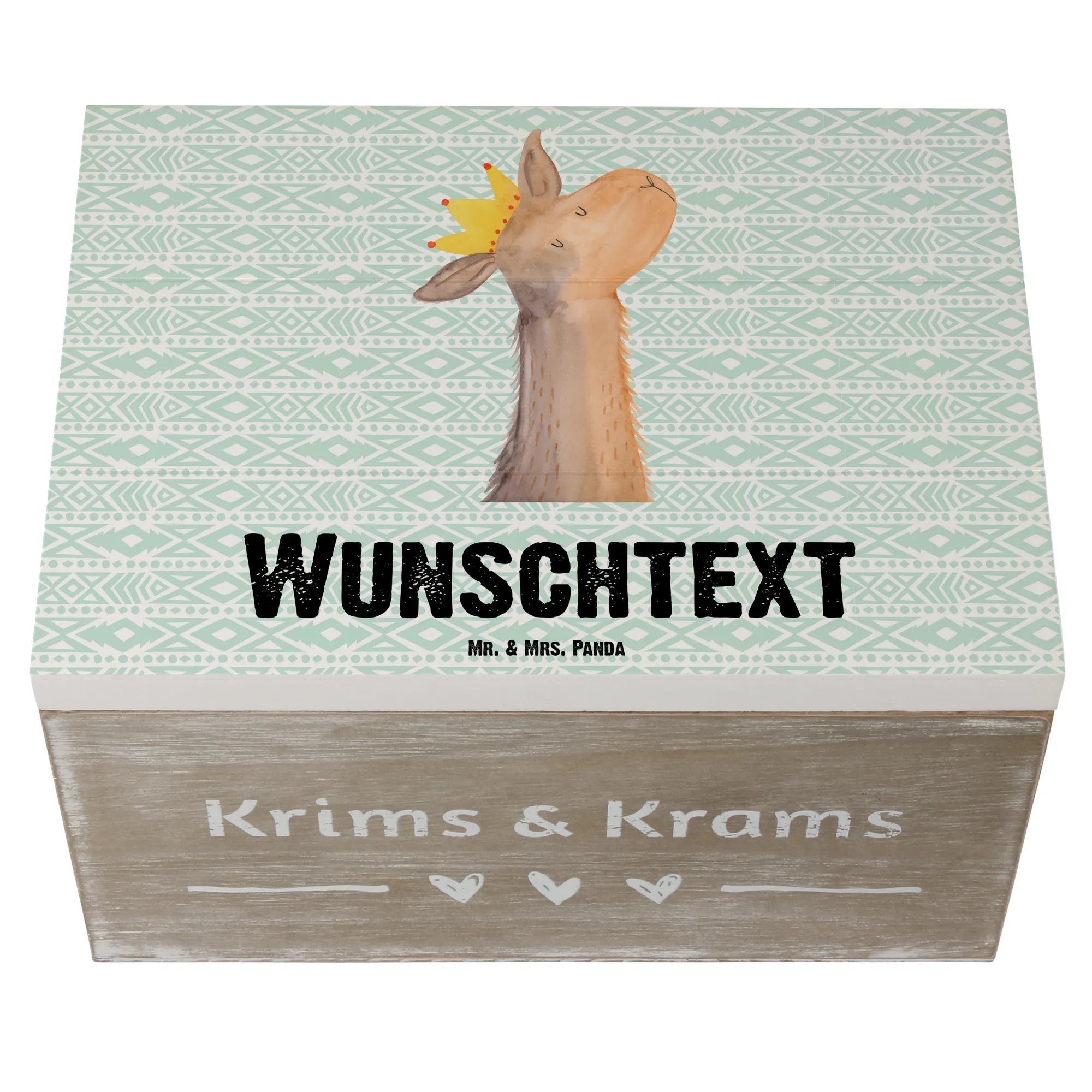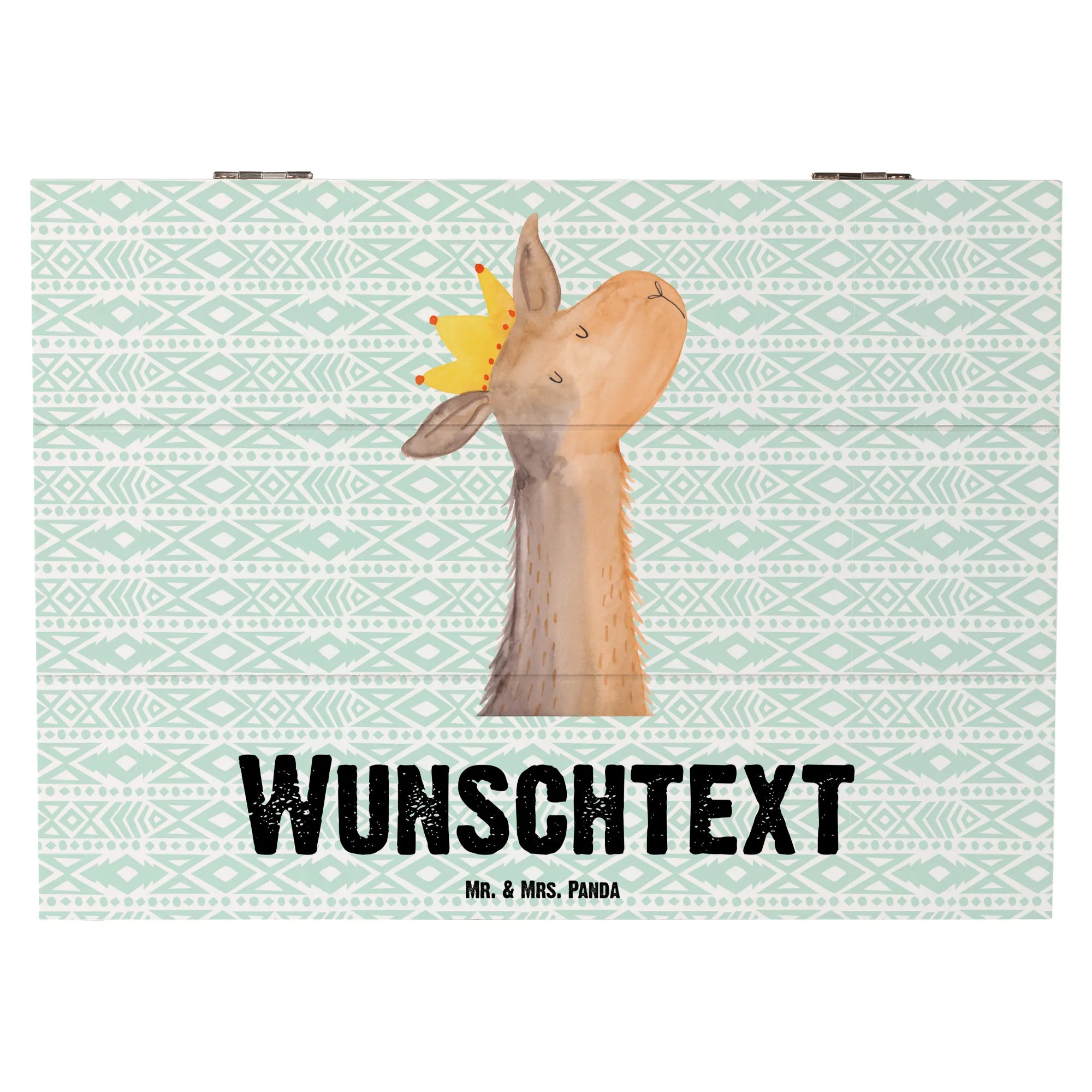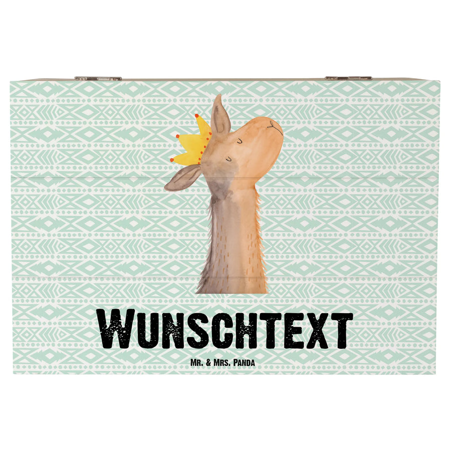 Personalisierte Holzkiste Lamakopf König - 22 x 15 cm - Aztekenblau